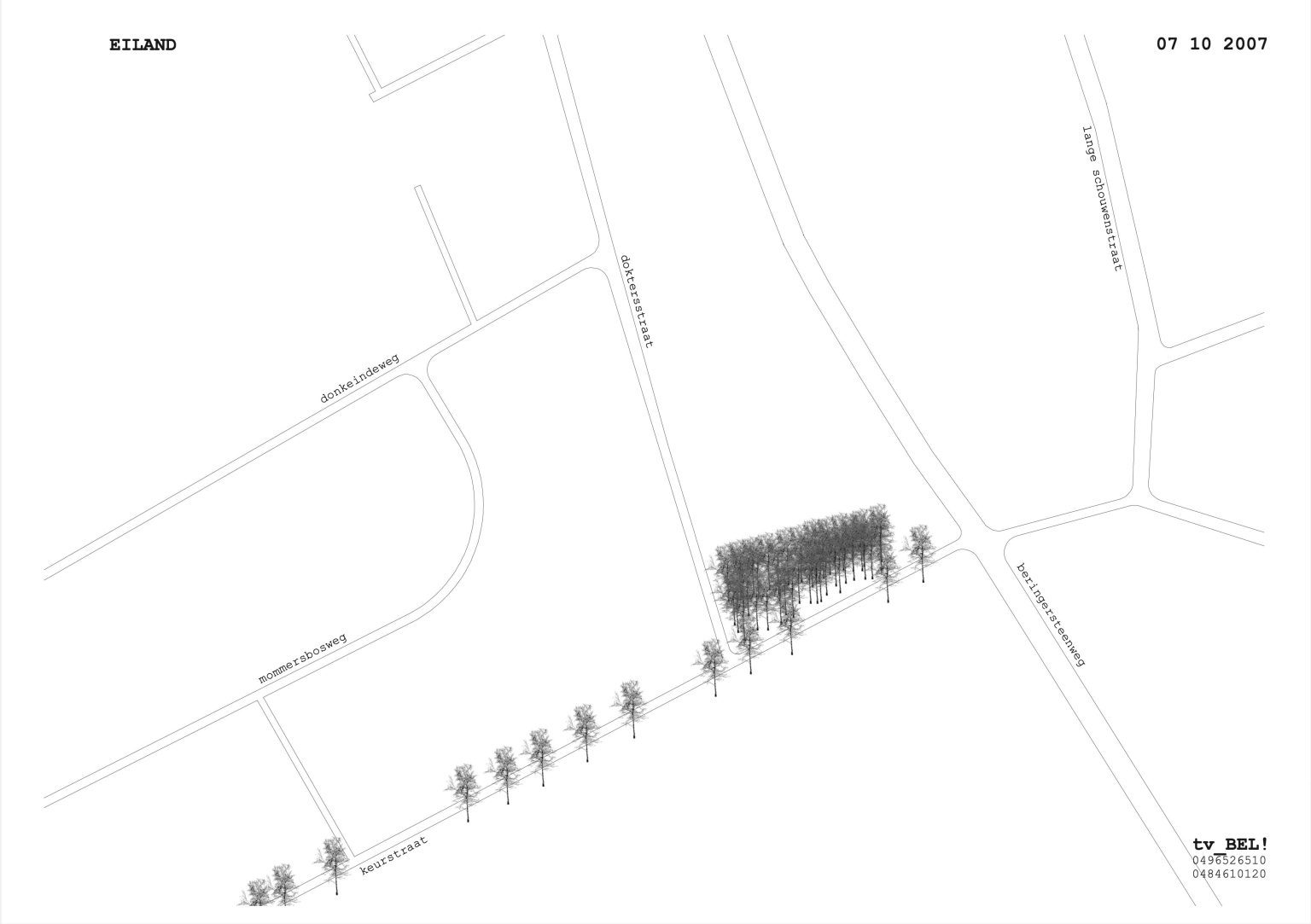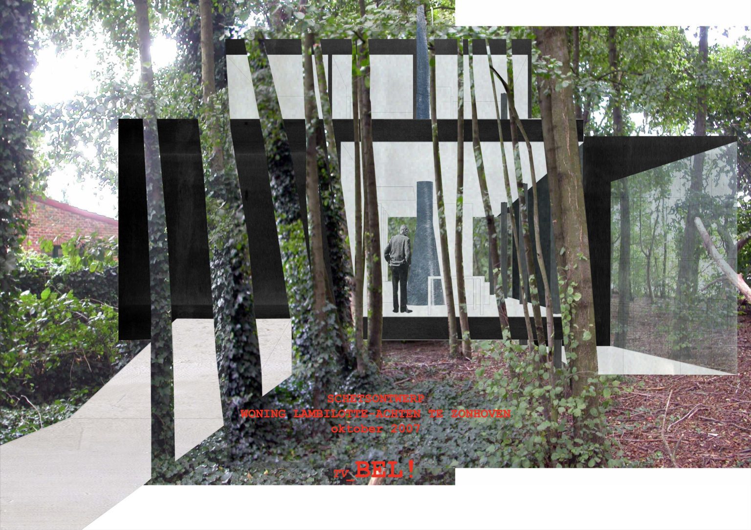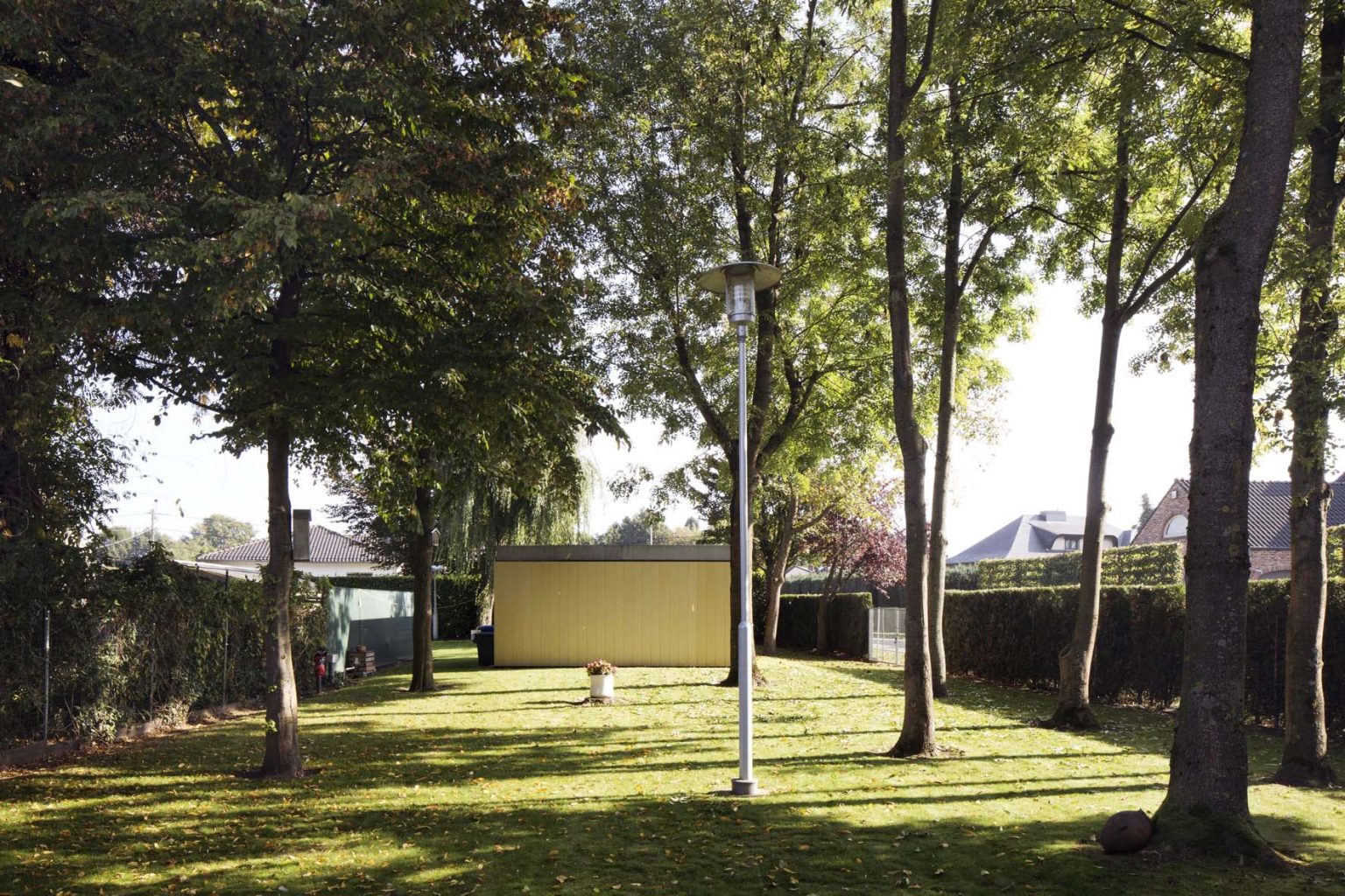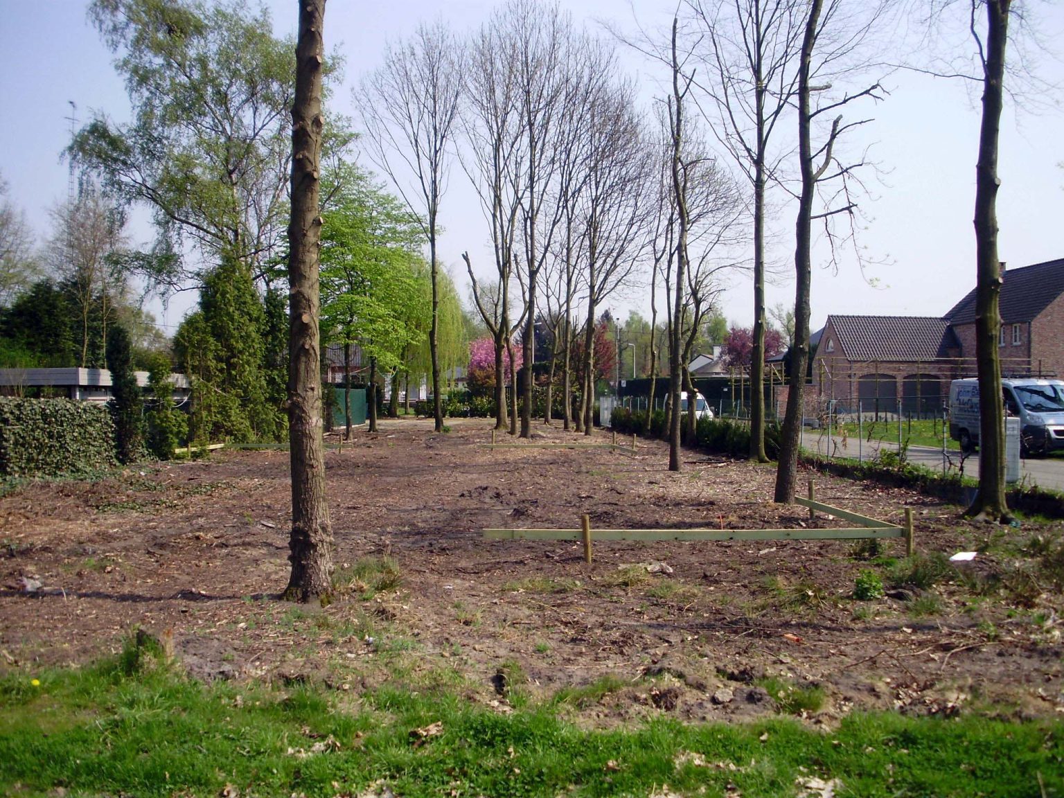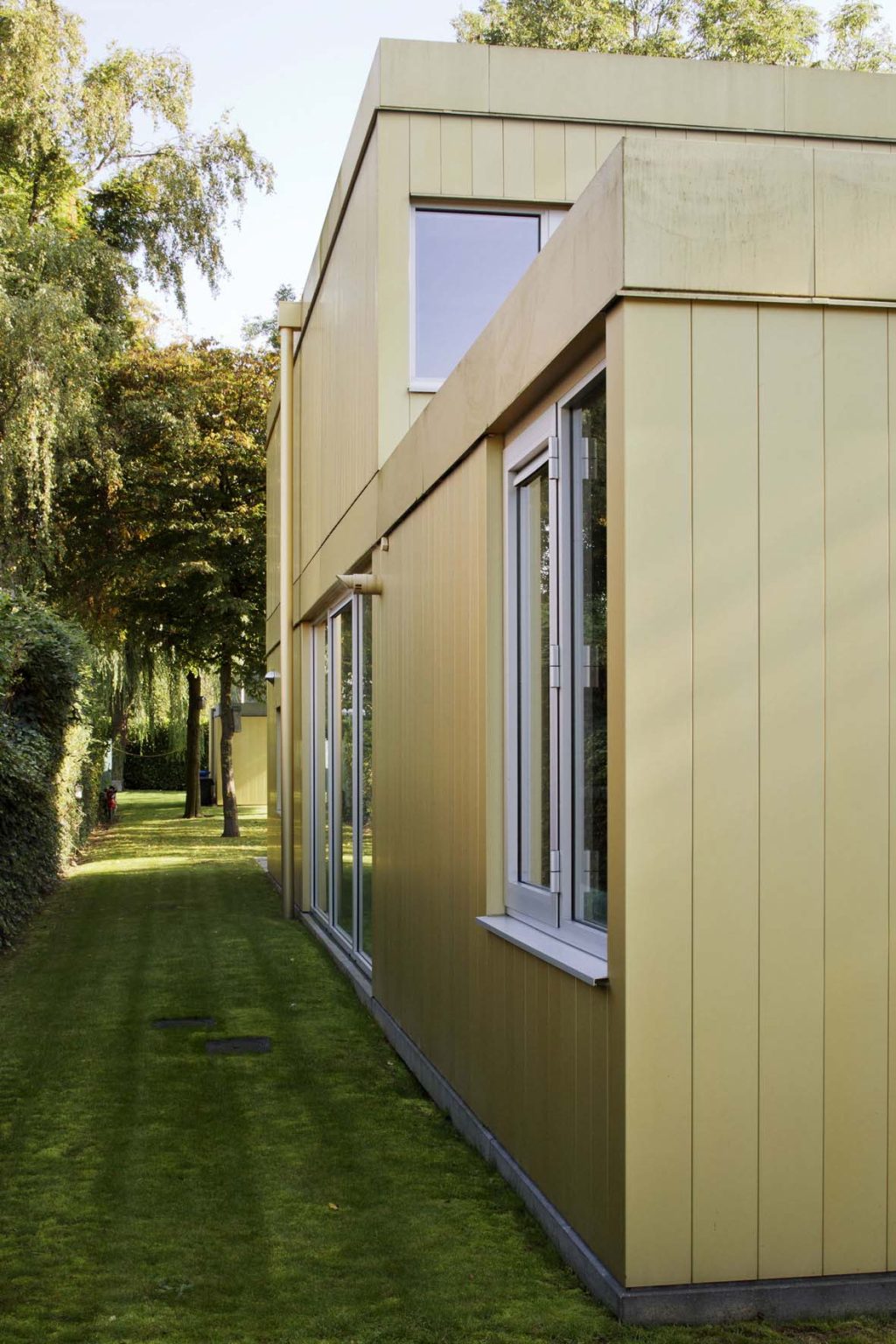 The plot is irregular in shape—narrow, elongated, and wedge-like. It borders a parallel road, Keurstraat, which creates significant overlooking issues. Keurstraat, lined with tall oak trees, leads to a bare, newly developed residential area. In contrast, the site—framed by its tall trees—forms a green oasis amidst the surrounding new builds, creating a sense of shelter and seclusion. In time, this green buffer will serve as a natural privacy screen for the new house.