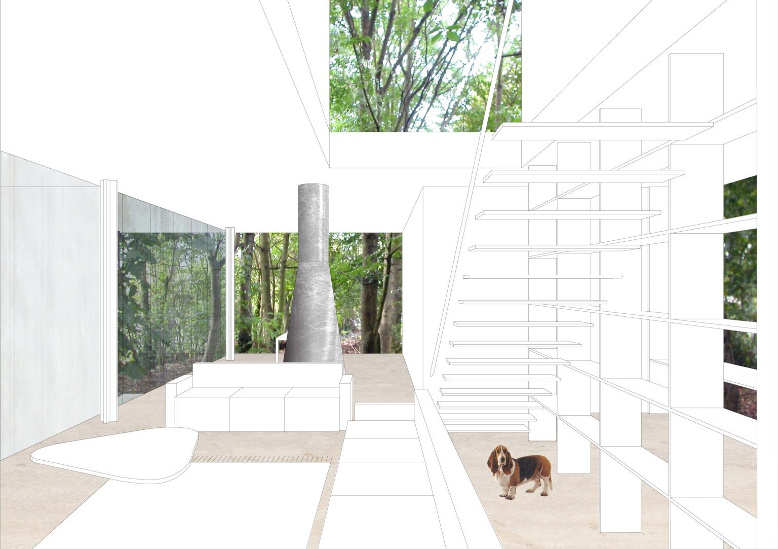 A main volume with an upper floor, built using a steel skeleton. All interior walls are non-load-bearing, offering great long-term flexibility—allowing rooms to be reorganized, expanded, or downsized as needed. The external shell is non-structural, made of high-performance thermal panels, both opaque and transparent, to ensure a comfortable indoor climate.