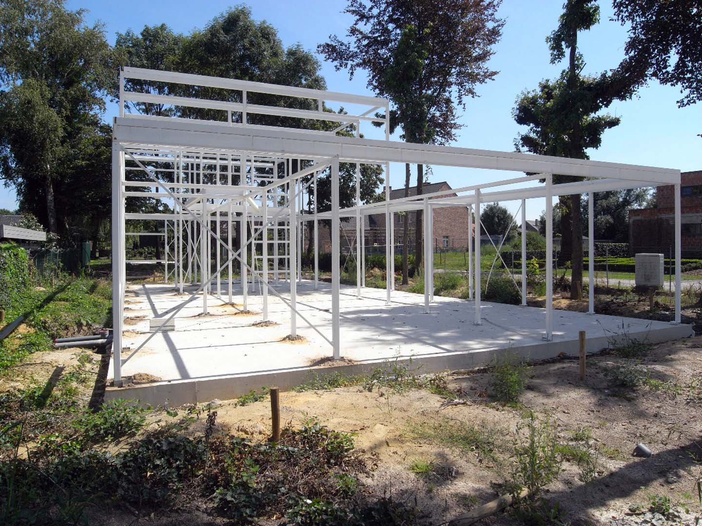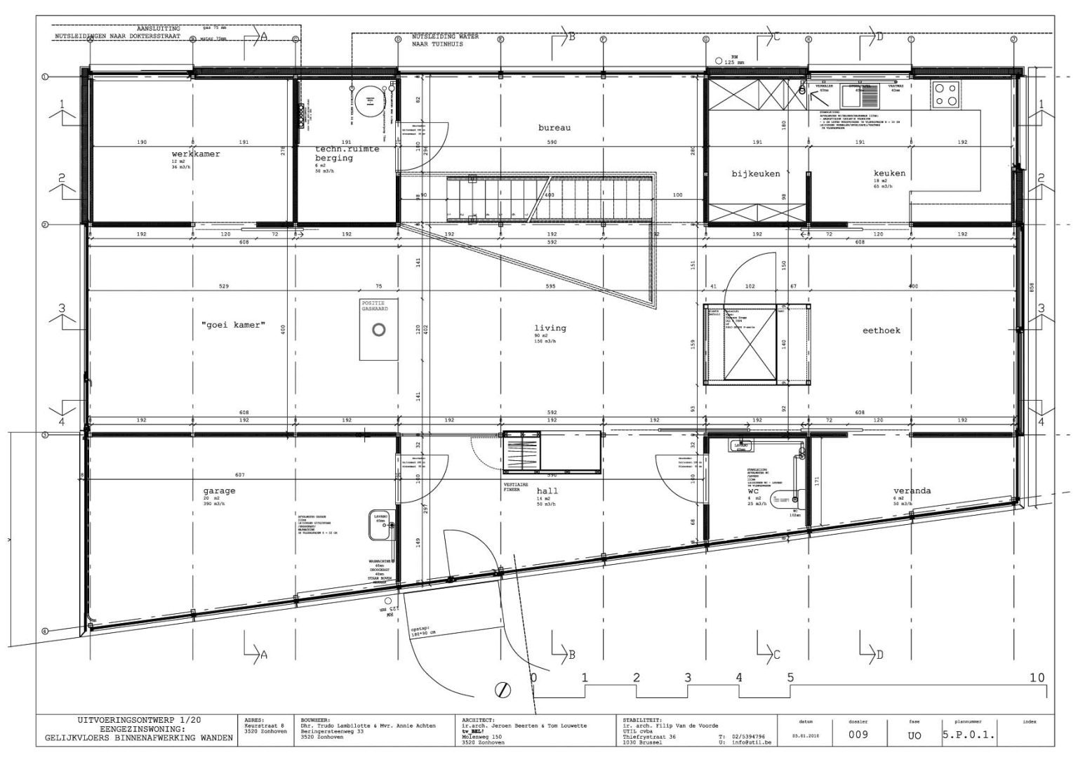The residents of a pharmacy located on Beringersteenweg in Zonhoven wish to build a new home for retirement. They envision a spacious, light-filled, and elegant house, with additional features such as a home office and a veranda. An elevator is a must, ensuring the house remains accessible as they age. The entire home should preferably be built using steel construction, enabling rapid assembly. The new residence will be located on a plot of land directly behind their current house.
