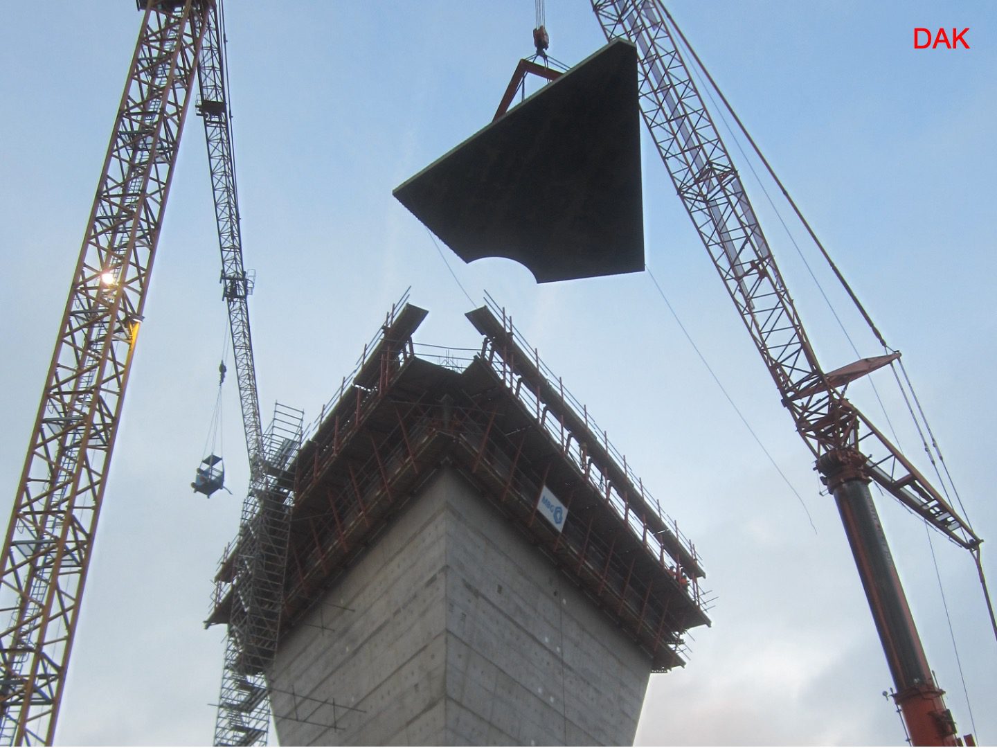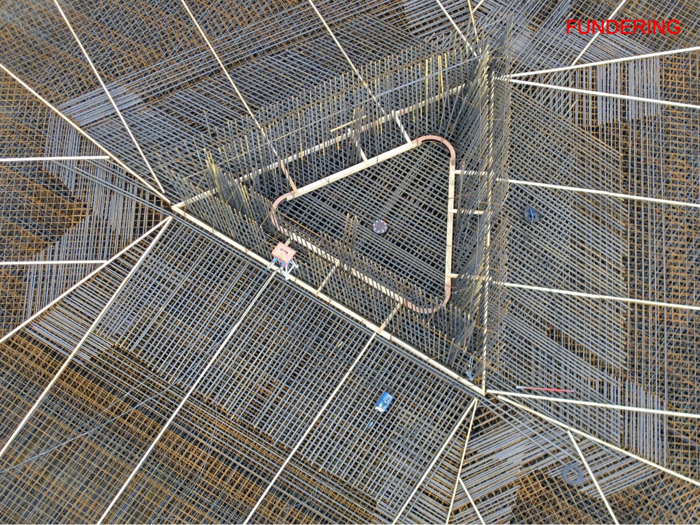 The whole rests on a foot like a wine glass. A hexagonal foundation sole transfers the enormous forces to the ground.