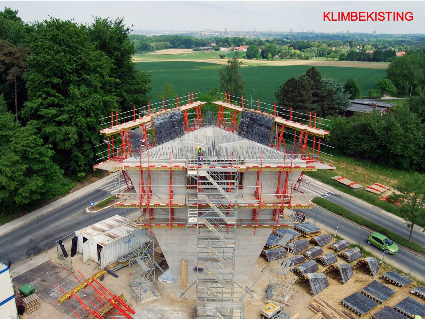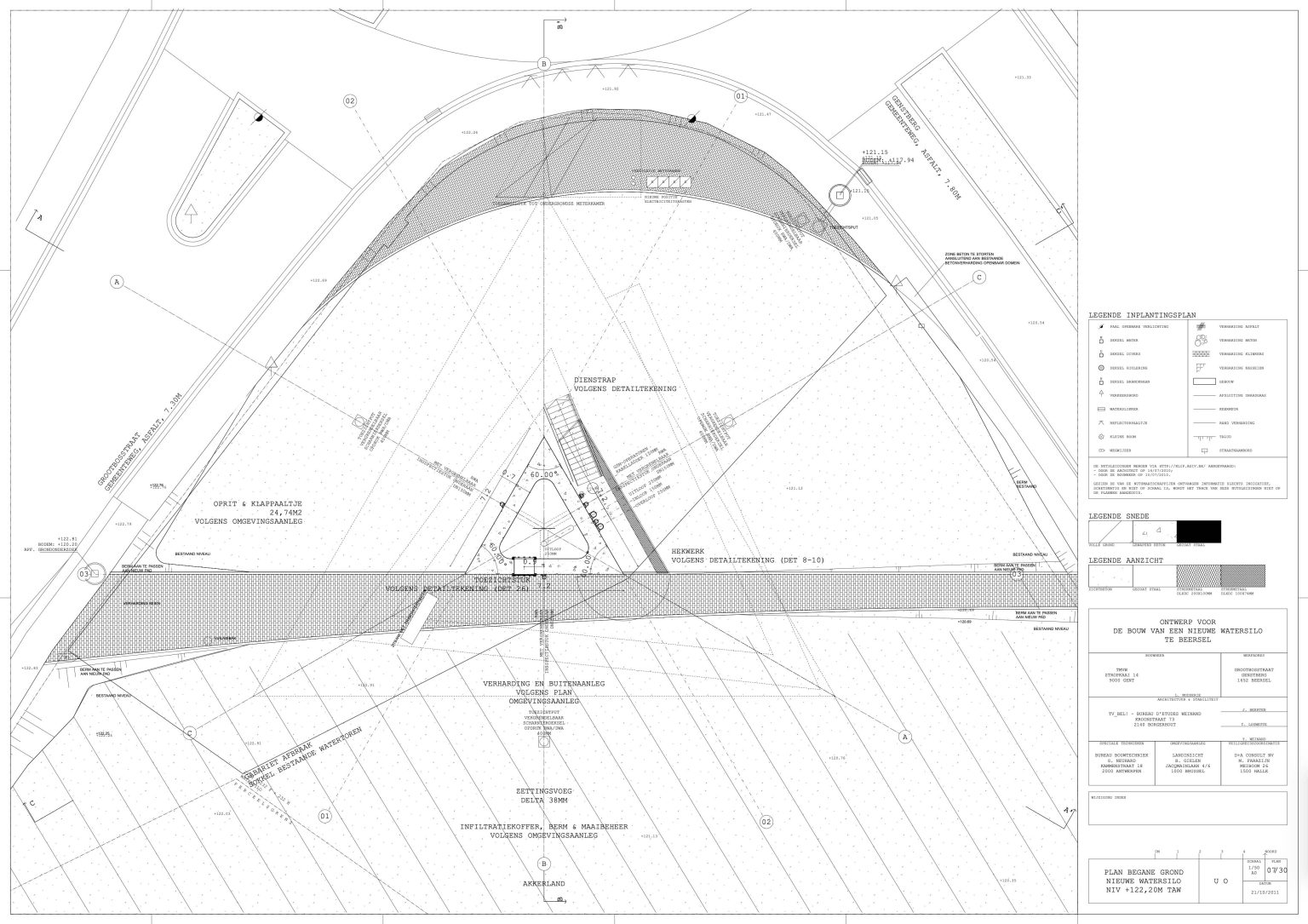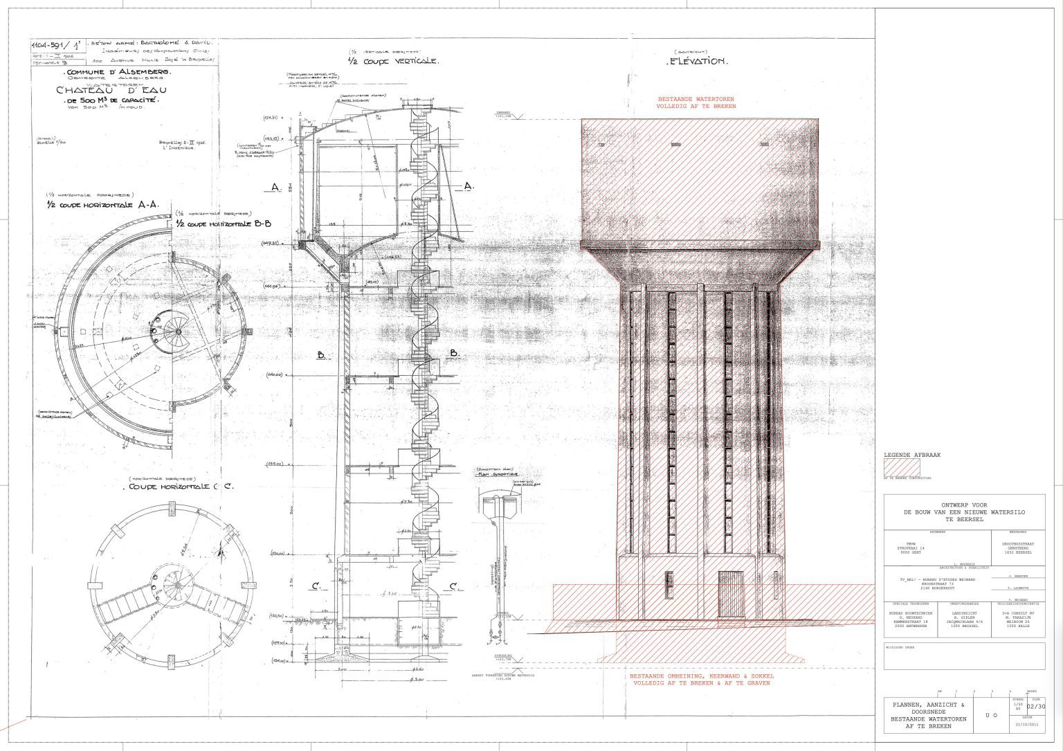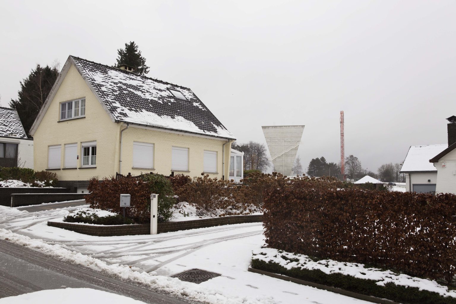 The existing water tower of Beersel is located at the roundabout between Sanatoriumstraat, Genstberg and Grootbosstraat. The site is a beautiful hilltop overlooking the fields with views of Brussels and the Sonian Forest. The old tower is too limited in capacity and needs to be replaced. A new tower is proposed. It would be built next to the old one. Then the old one would be torn down.