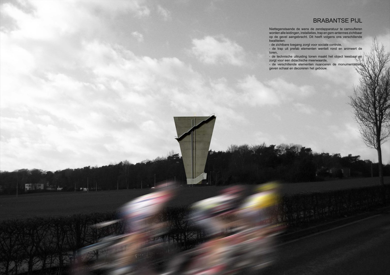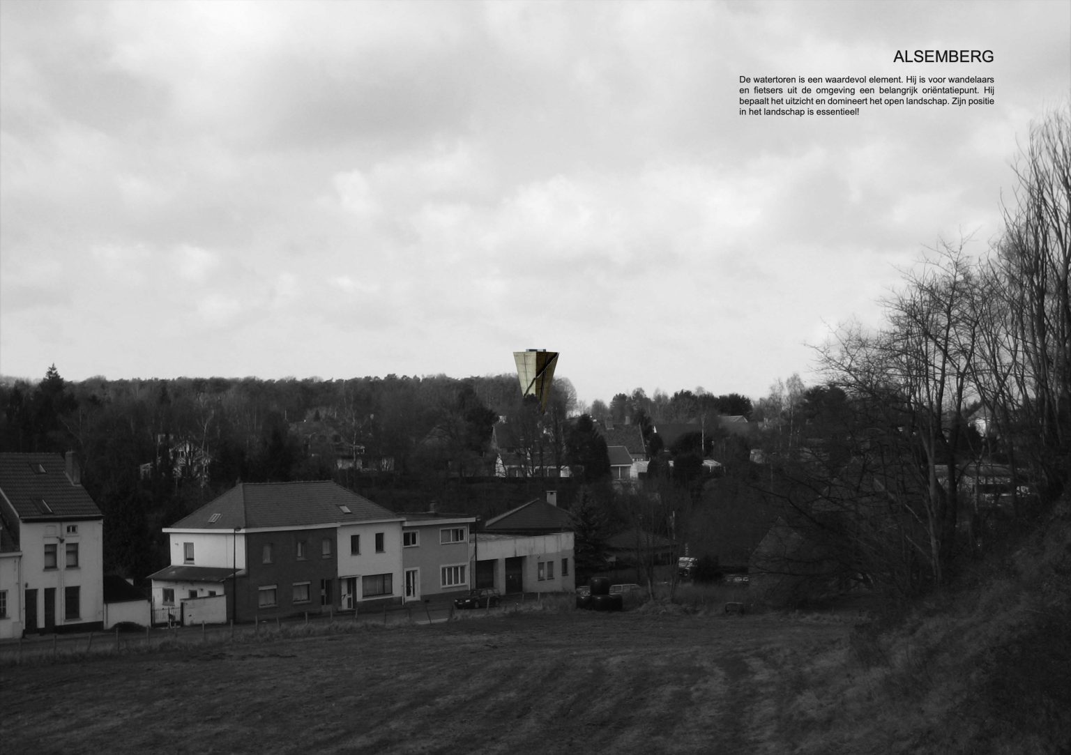 The existing water tower is a valuable element, however. It is an important landmark for hikers and cyclists from the area. It determines the sight and dominates the open landscape. Its position in the landscape is essential!