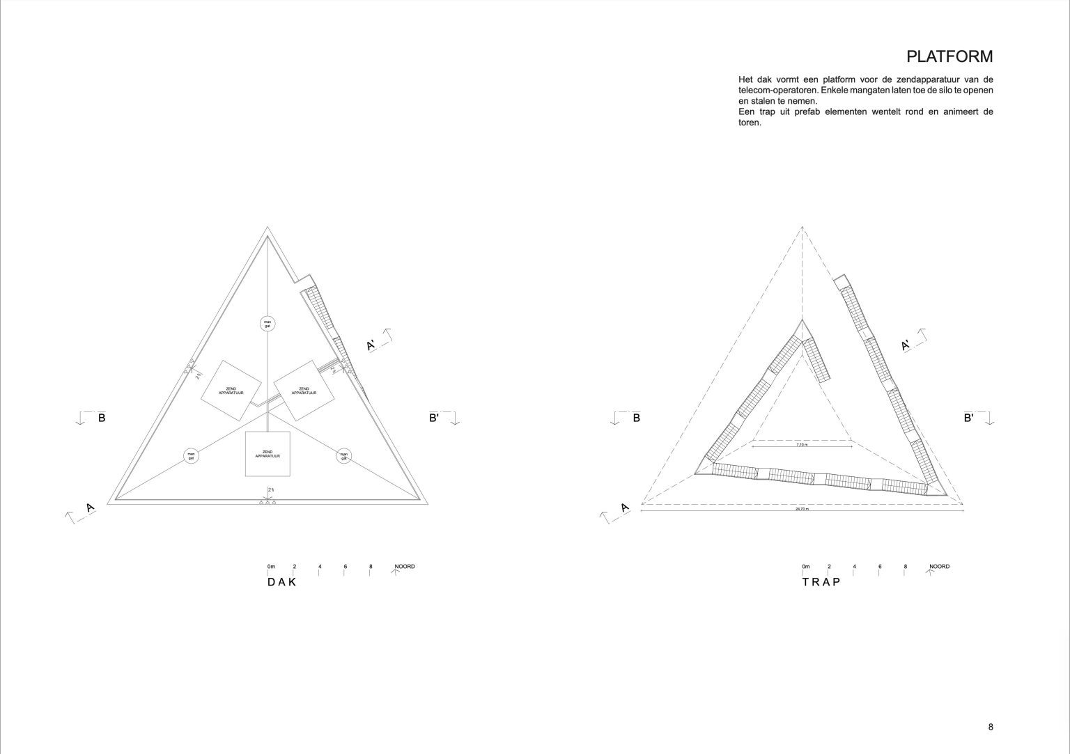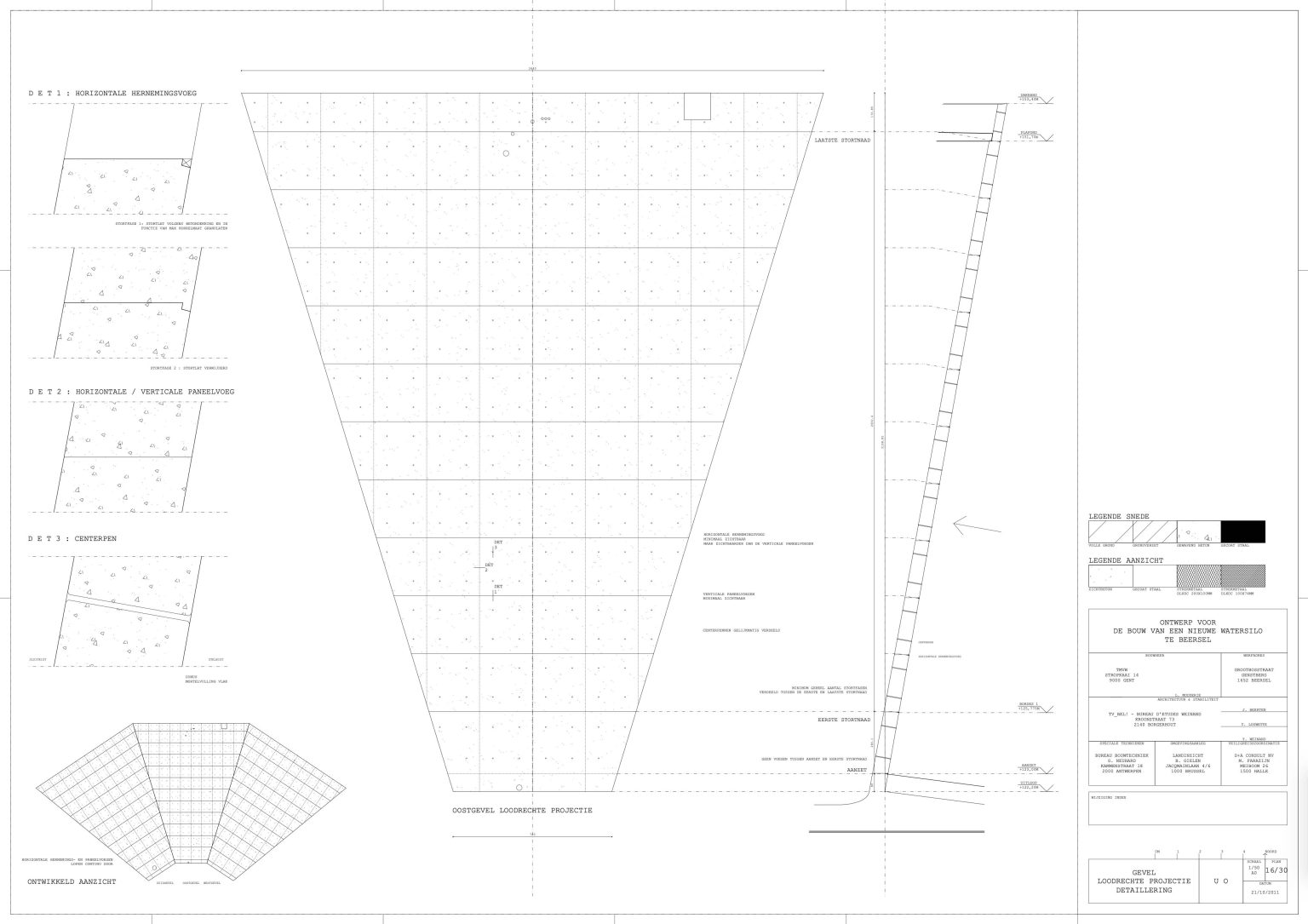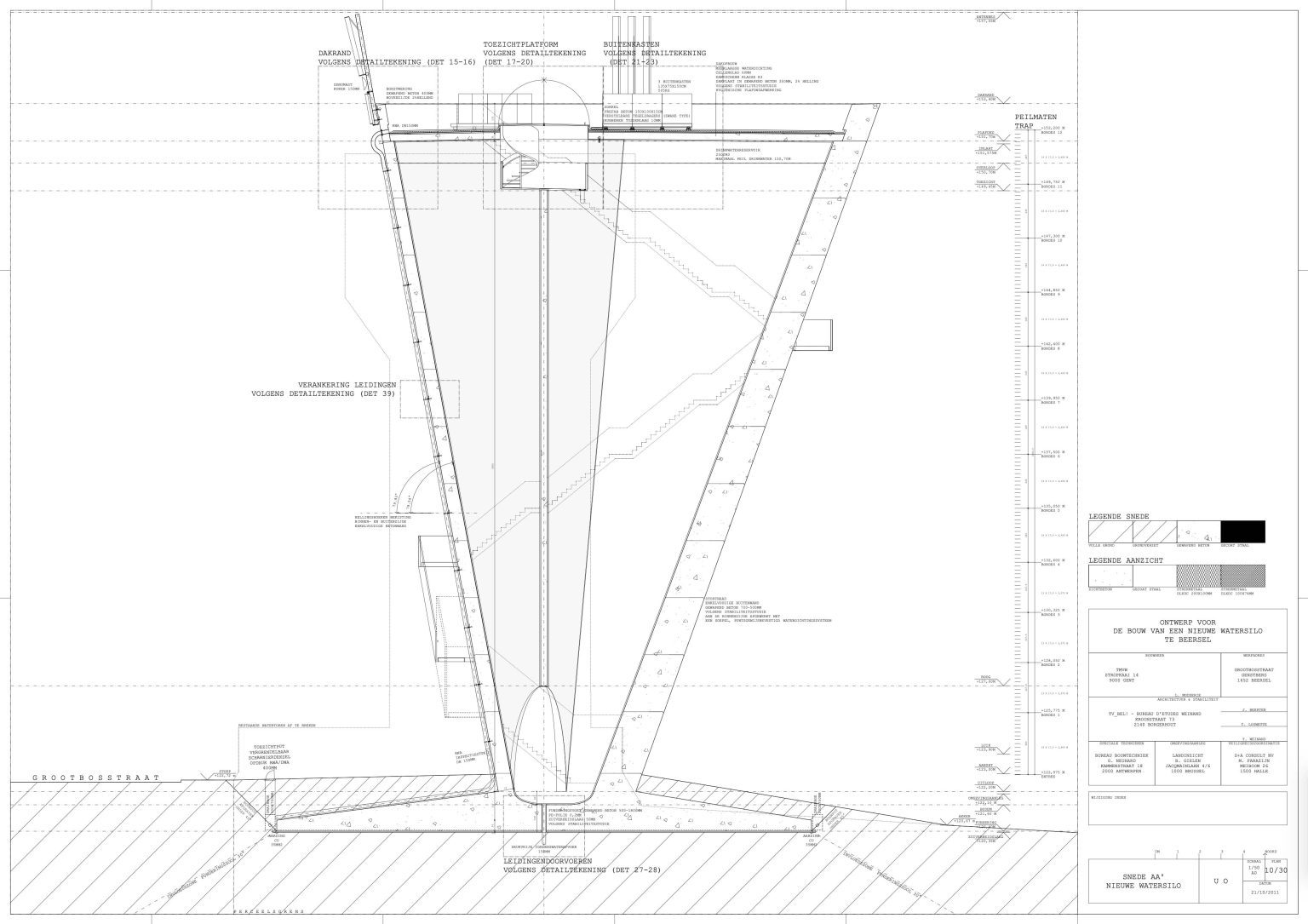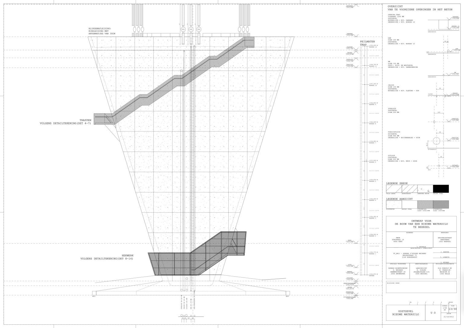 The new construction is reduced to its essence: a simple conical volume, single-walled, stripped of superfluous hollow spaces and a maximum volume of water above the required critical height. Notwithstanding the desire to camouflage the transmitting equipment, all pipes, installations, stairs and GSM antennas are visibly placed on the facade. We believe this has several qualities: