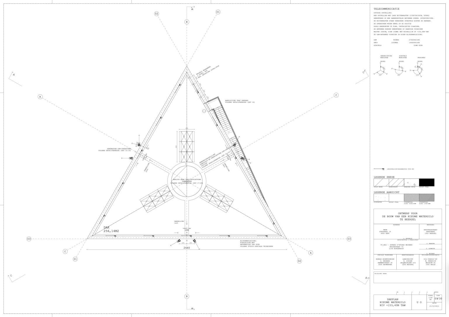 The roof forms a platform for the transmission equipment of the telecom operators. Several manholes allow opening the silo to take samples.