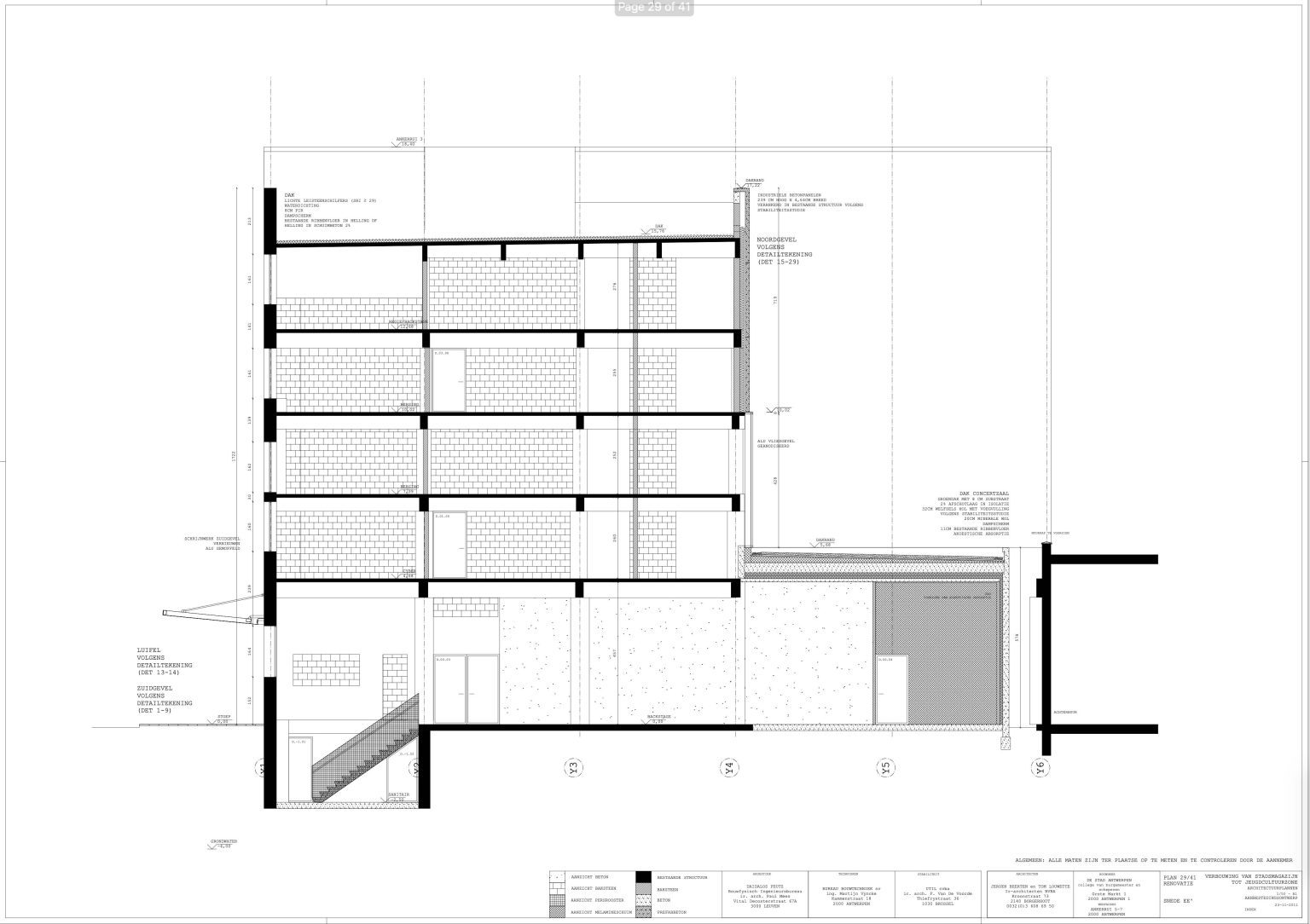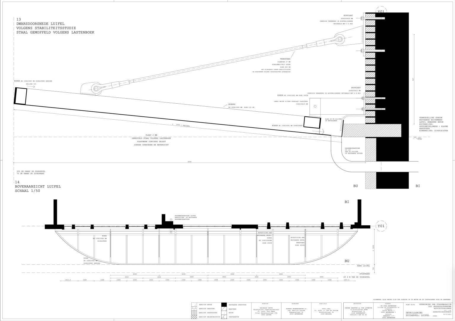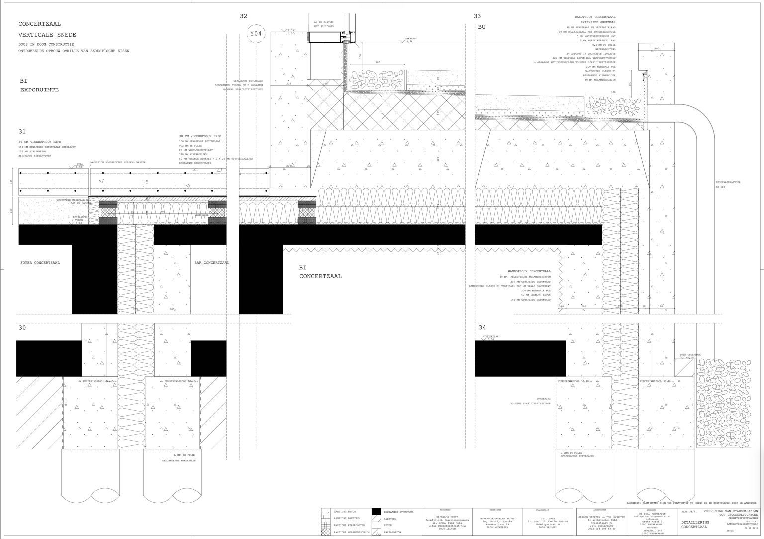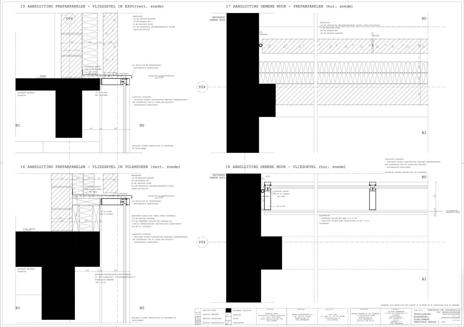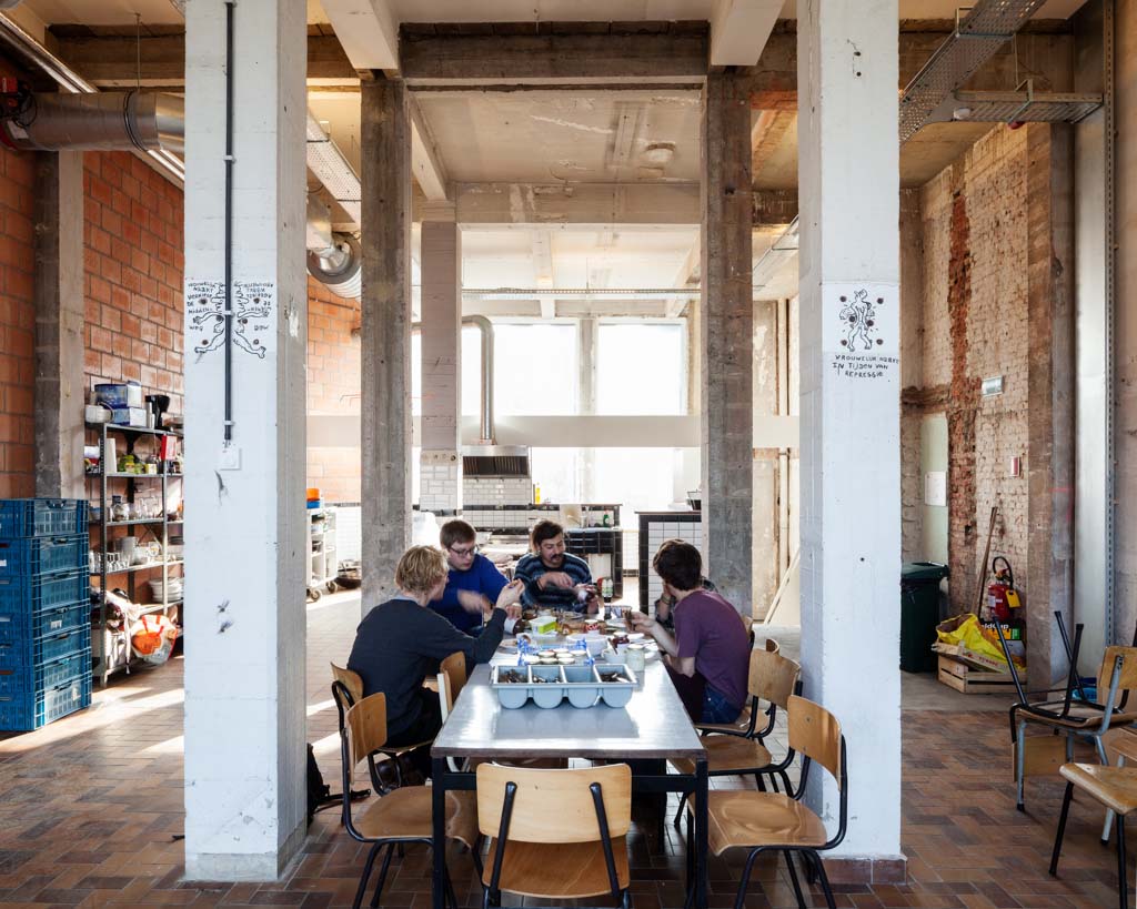 The new programme consists of three major parts: music, theater and visual arts. Each part requires a specific space with its own character: a concert hall (200p), a theatre (80p) and a multipurpose room. The youth culture centre will have a new central entrance with a canopy. A gap, a “canyon” cuts through the building from the street to the garden. At its end an open staircase, footbridges, technical stuff and a hoist animate this vertical public space. All audience levels, including the new café, the “popular kitchen”, a duplex exhibition space and the three large halls are directly and visually interconnected through this main staircase. Because of the high acoustics norms, the concert hall is built according to the box-in-box principle. The theatre is located on the third floor and has a potato-shaped window overlooking the Willem Dock. The multipurpose room is situated in between: a bright space with large glass surfaces. Because of the low budget, the structural work will remain visible. No additional finishing touch!