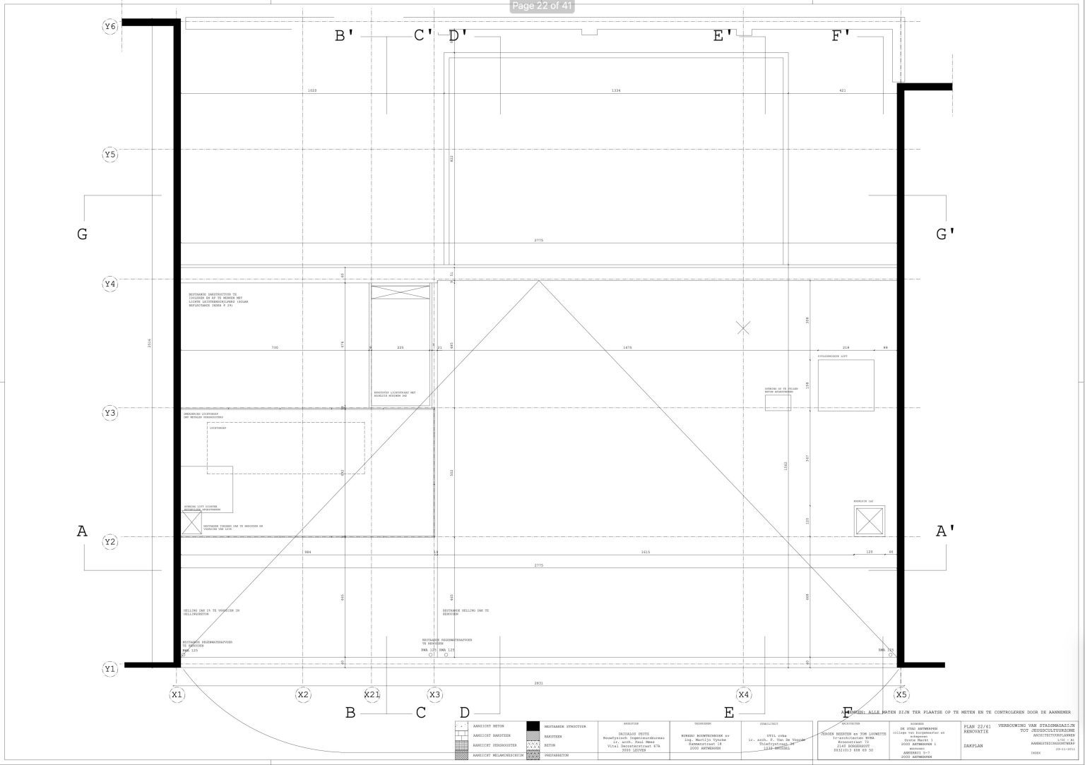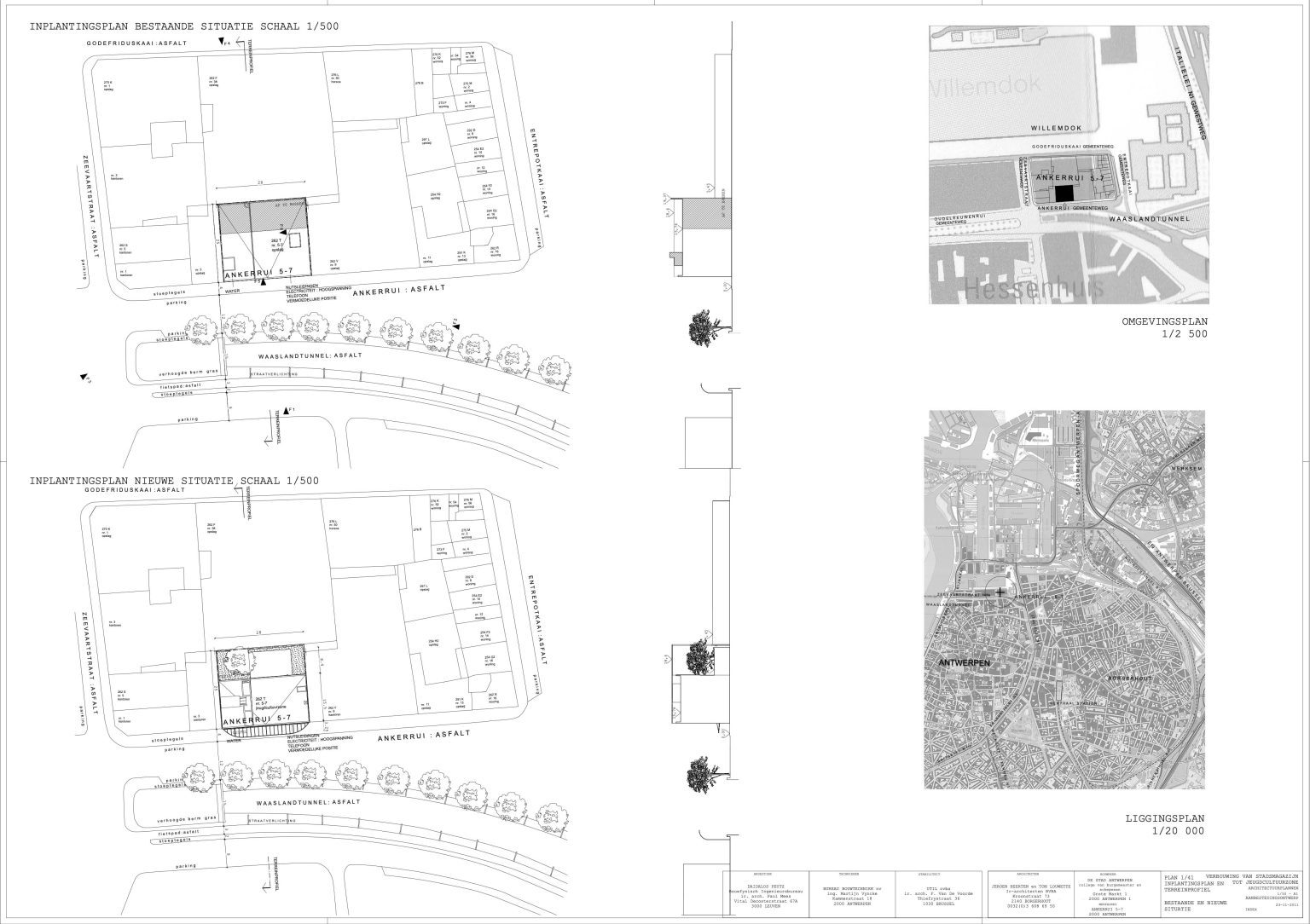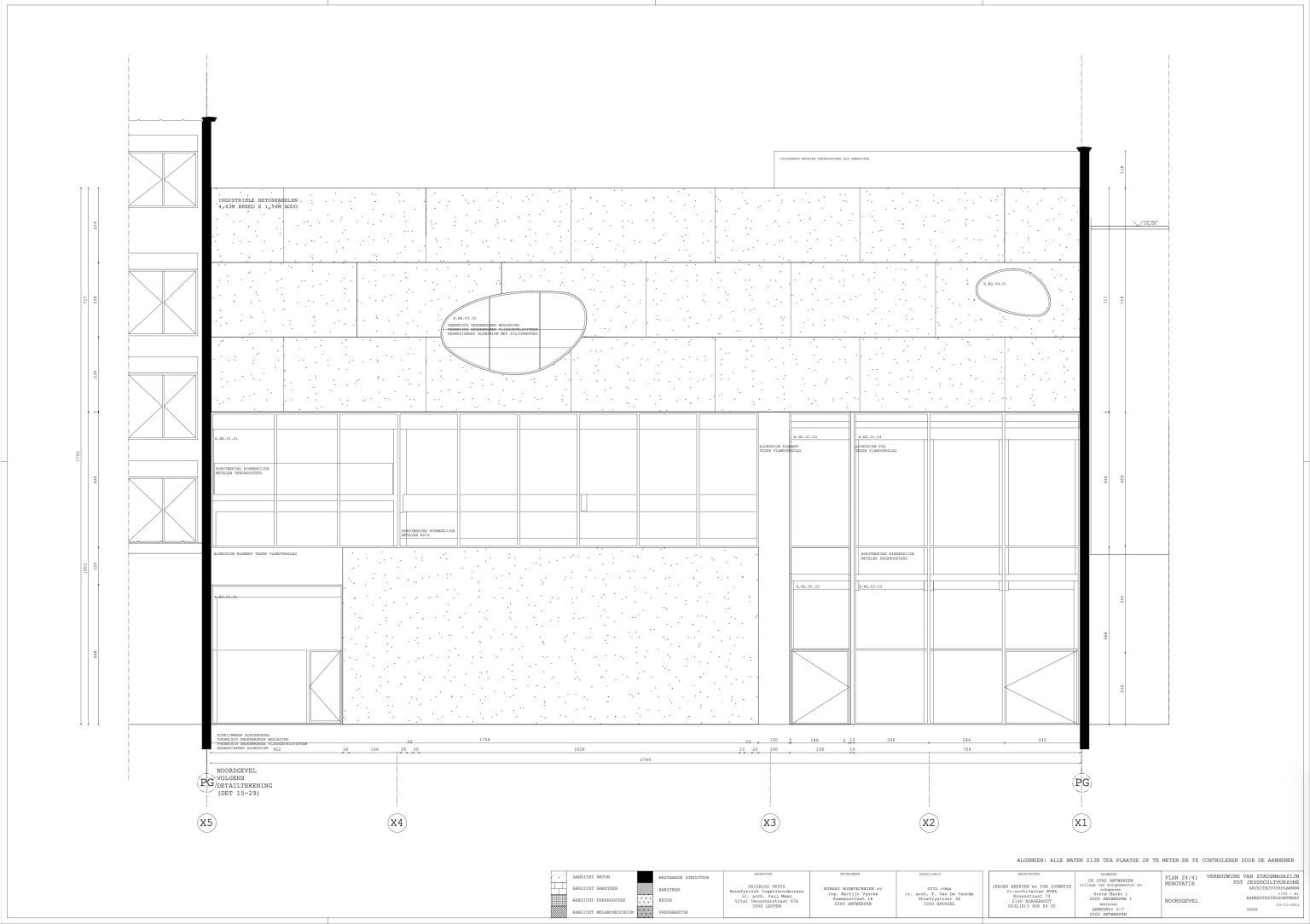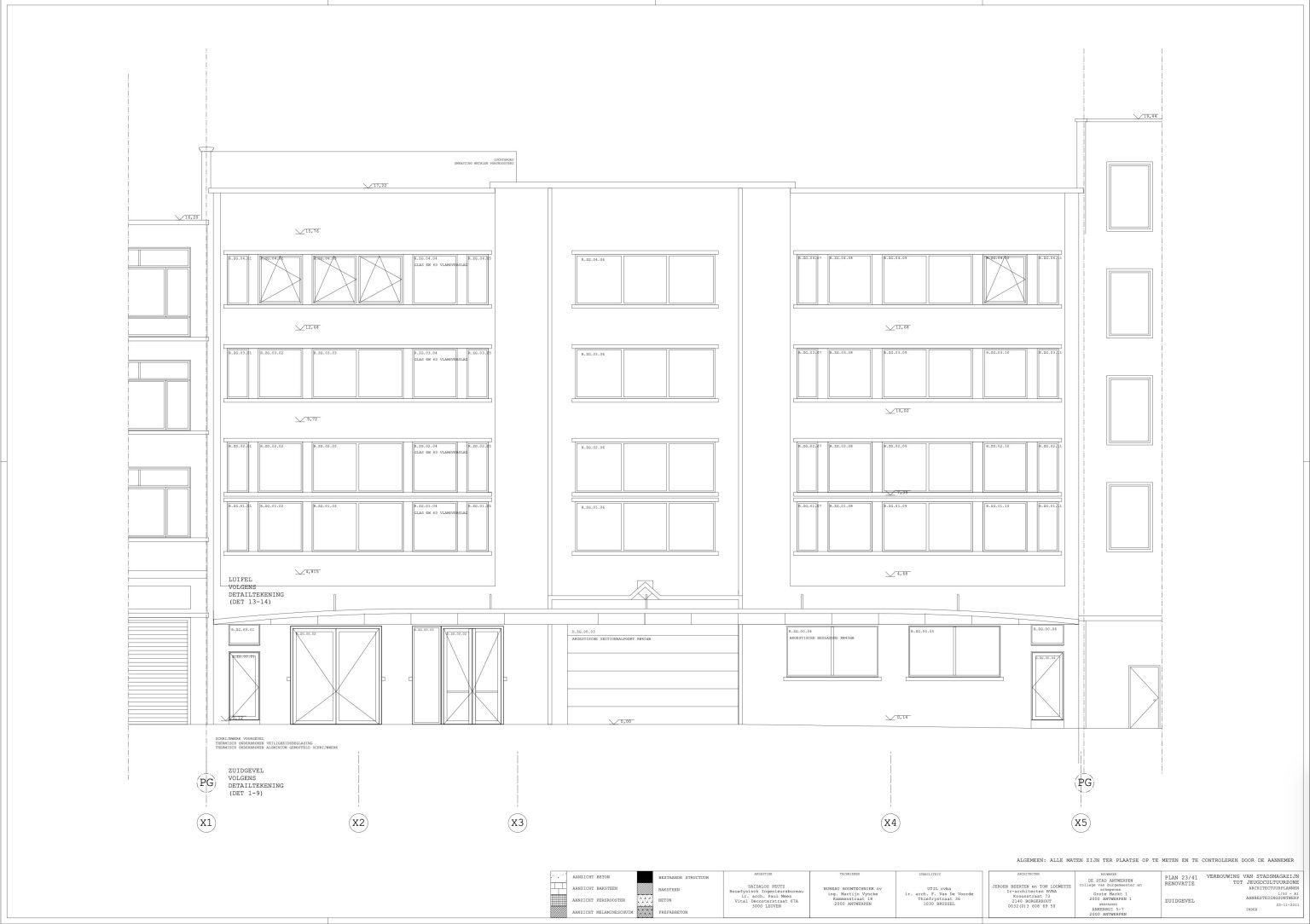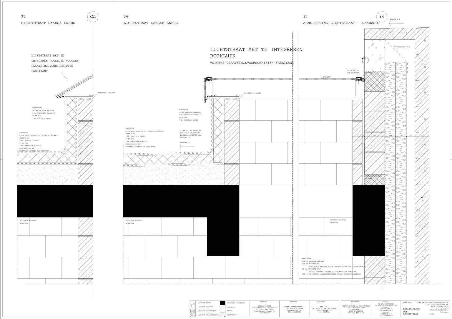The new programme consists of three major parts: music, theater and visual arts. Each part requires a specific space with its own character: a concert hall (200p), a theatre (80p) and a multipurpose room. The youth culture centre will have a new central entrance with a canopy. A gap, a “canyon” cuts through the building from the street to the garden. At its end an open staircase, footbridges, technical stuff and a hoist animate this vertical public space. All audience levels, including the new café, the “popular kitchen”, a duplex exhibition space and the three large halls are directly and visually interconnected through this main staircase. Because of the high acoustics norms, the concert hall is built according to the box-in-box principle. The theatre is located on the third floor and has a potato-shaped window overlooking the Willem Dock. The multipurpose room is situated in between: a bright space with large glass surfaces. Because of the low budget, the structural work will remain visible. No additional finishing touch!