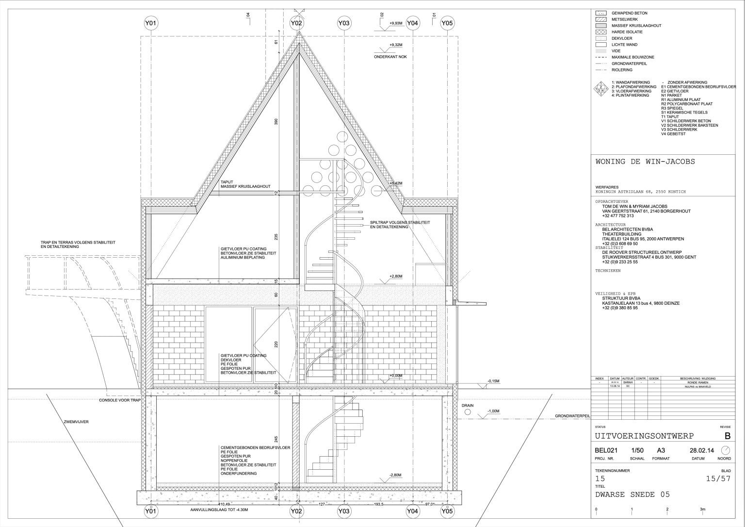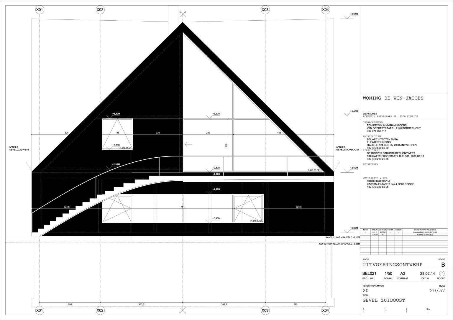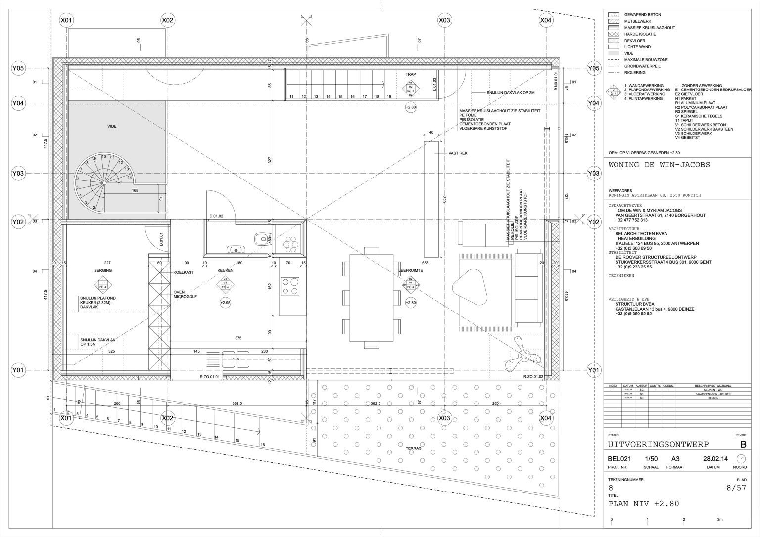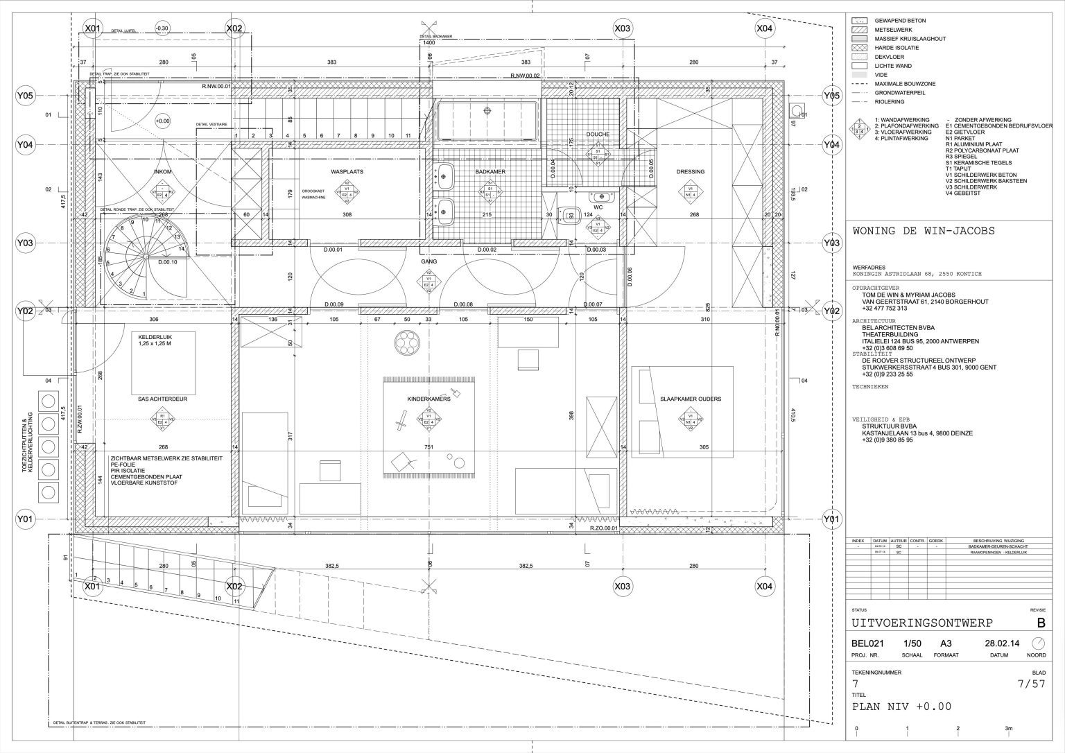 The man of the house runs a family business specializing in aluminium windows and doors. The designers of the house are two young architects with whom the client once shared lecture halls at KU Leuven. “They were always among the best in our year,” he says. “That’s why I approached them when I wanted to renovate our showroom. We were so pleased with the result that we asked them to design our home as well.” By now, the duo has built up a varied portfolio, including the recently completed water silo in Alsemberg and the new sports hall in Genk. The brief for the new residence was clear: a dingy 1970s holiday home had to make way for a “contemporary, exciting house with a loft feel.”