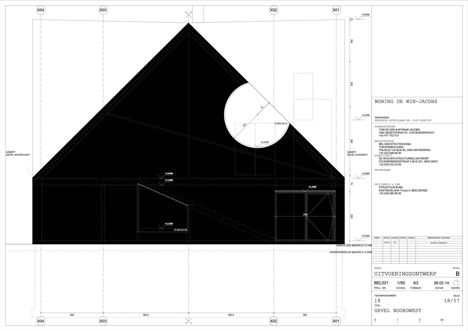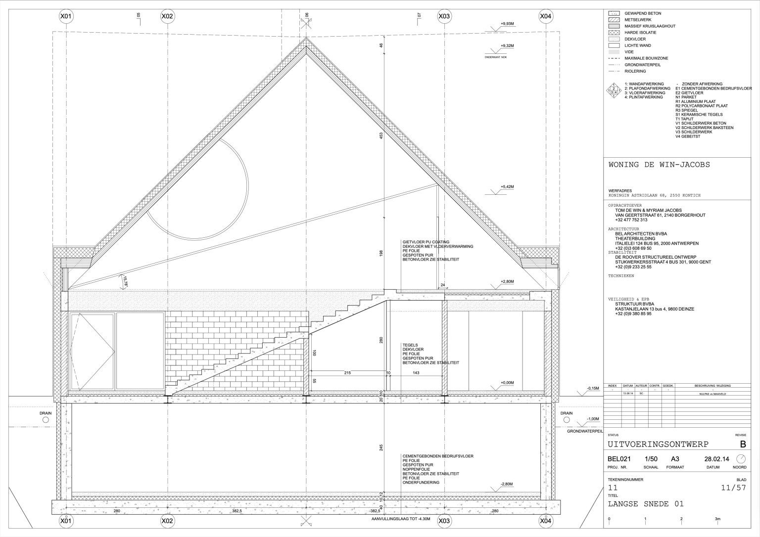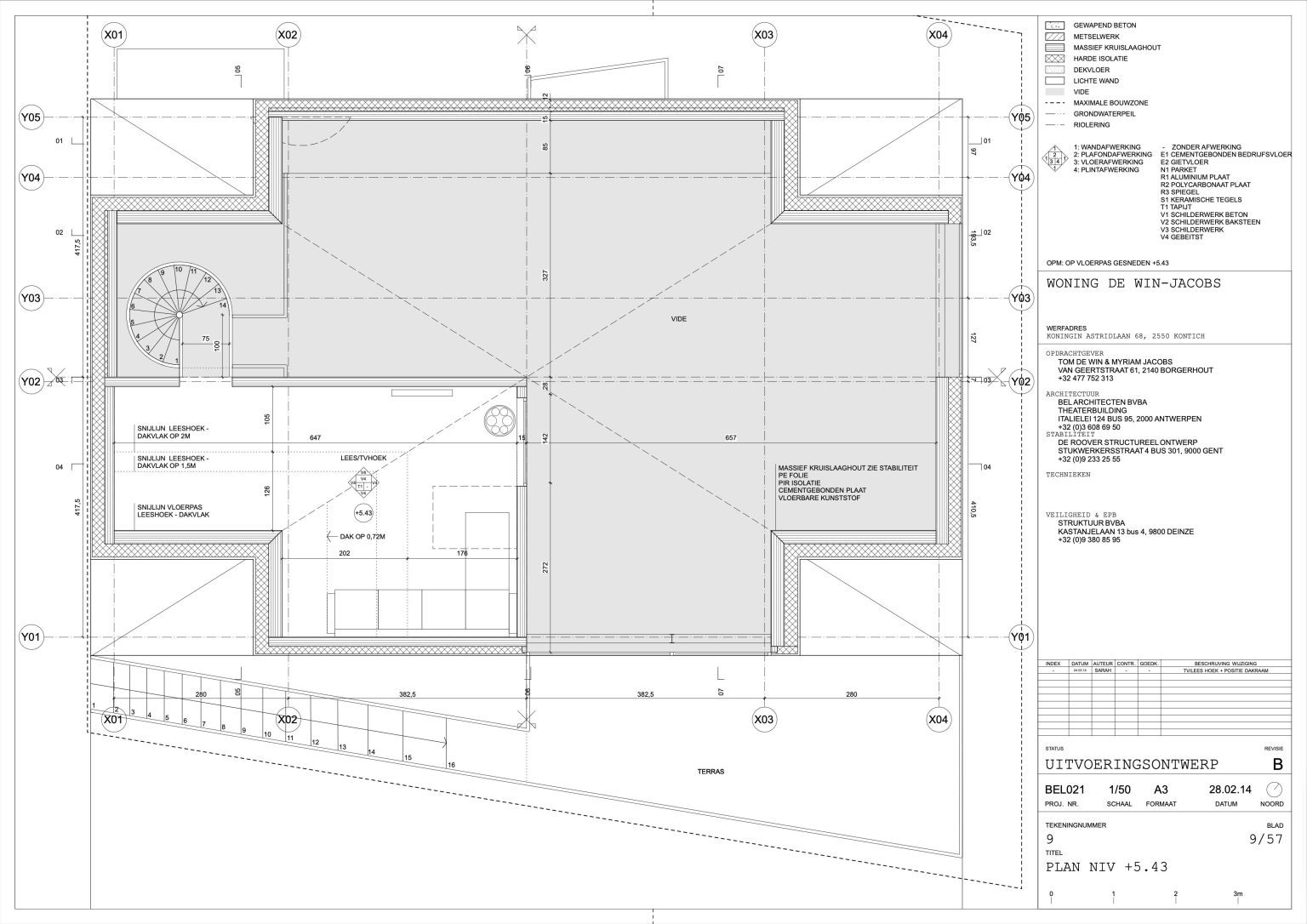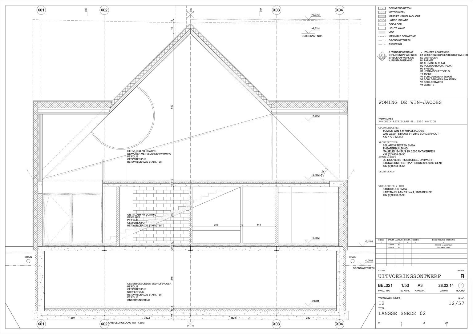 The man of the house runs a family business specializing in aluminium windows and doors. The designers of the house are two young architects with whom the client once shared lecture halls at KU Leuven. “They were always among the best in our year,” he says. “That’s why I approached them when I wanted to renovate our showroom. We were so pleased with the result that we asked them to design our home as well.” By now, the duo has built up a varied portfolio, including the recently completed water silo in Alsemberg and the new sports hall in Genk. The brief for the new residence was clear: a dingy 1970s holiday home had to make way for a “contemporary, exciting house with a loft feel.”