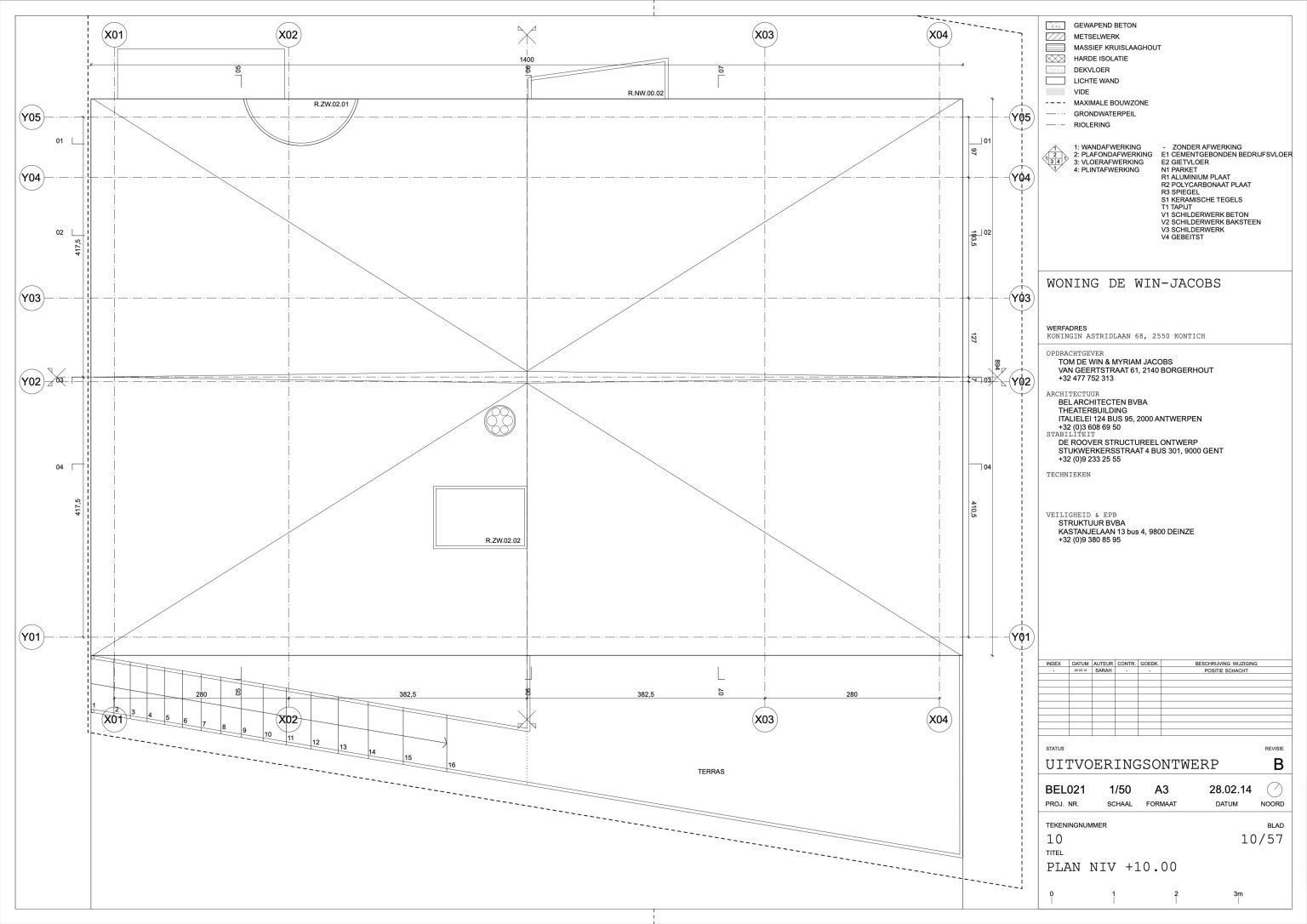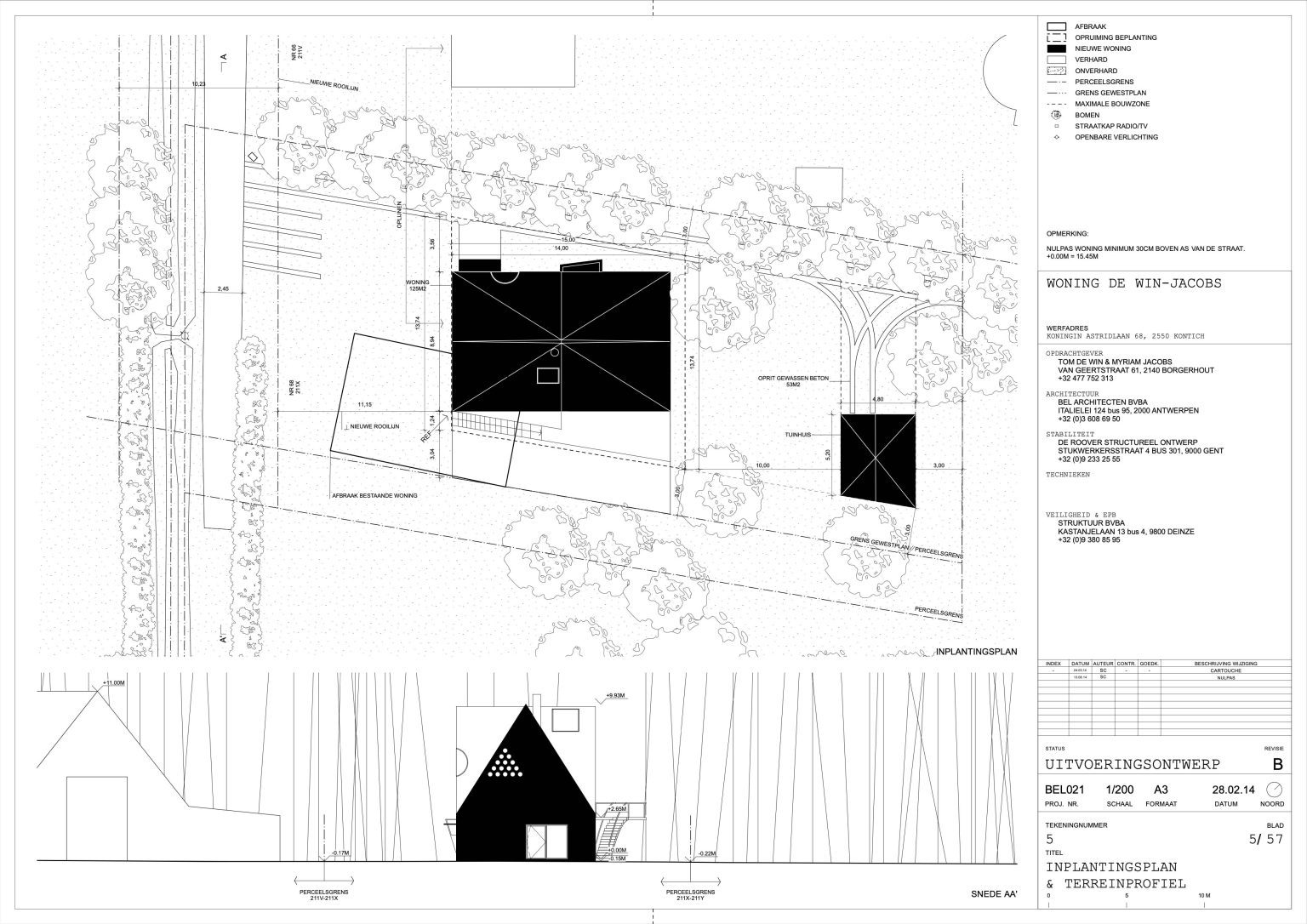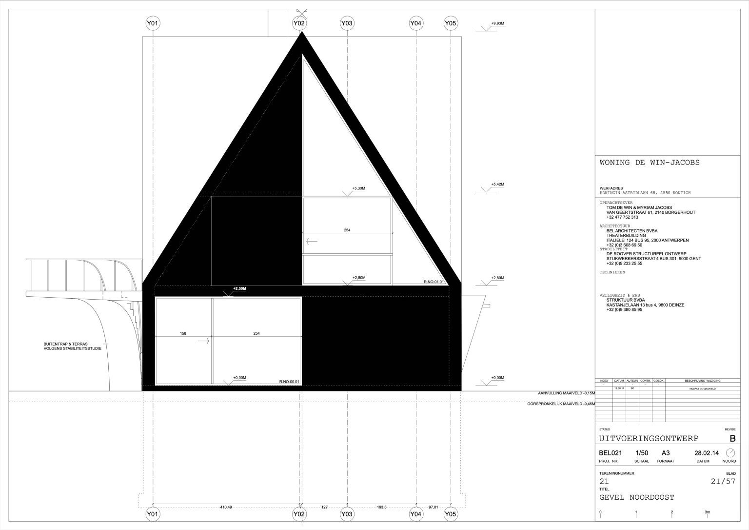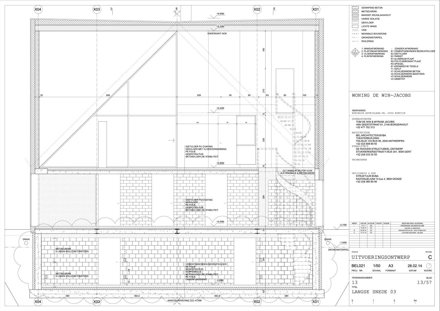 The man of the house runs a family business specializing in aluminium windows and doors. The designers of the house are two young architects with whom the client once shared lecture halls at KU Leuven. “They were always among the best in our year,” he says. “That’s why I approached them when I wanted to renovate our showroom. We were so pleased with the result that we asked them to design our home as well.” By now, the duo has built up a varied portfolio, including the recently completed water silo in Alsemberg and the new sports hall in Genk. The brief for the new residence was clear: a dingy 1970s holiday home had to make way for a “contemporary, exciting house with a loft feel.”