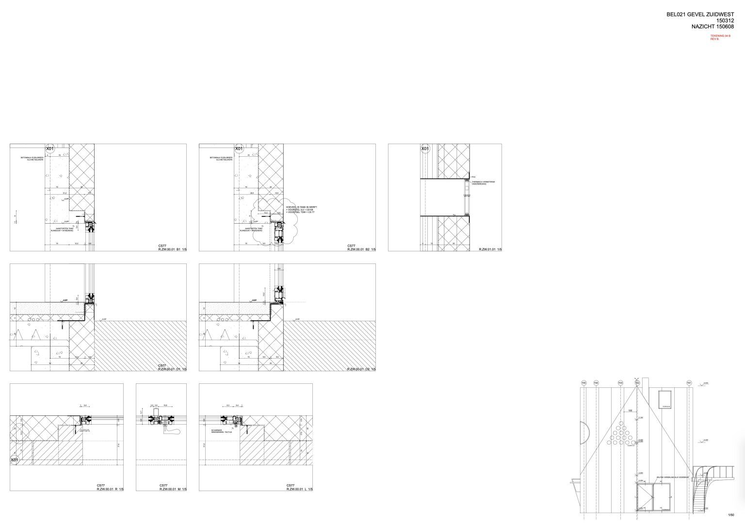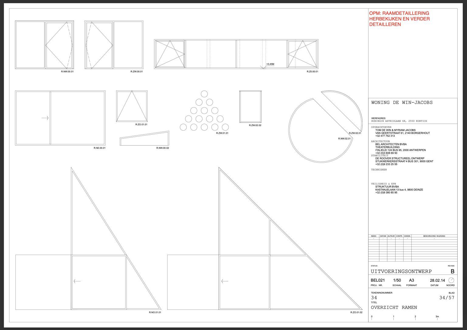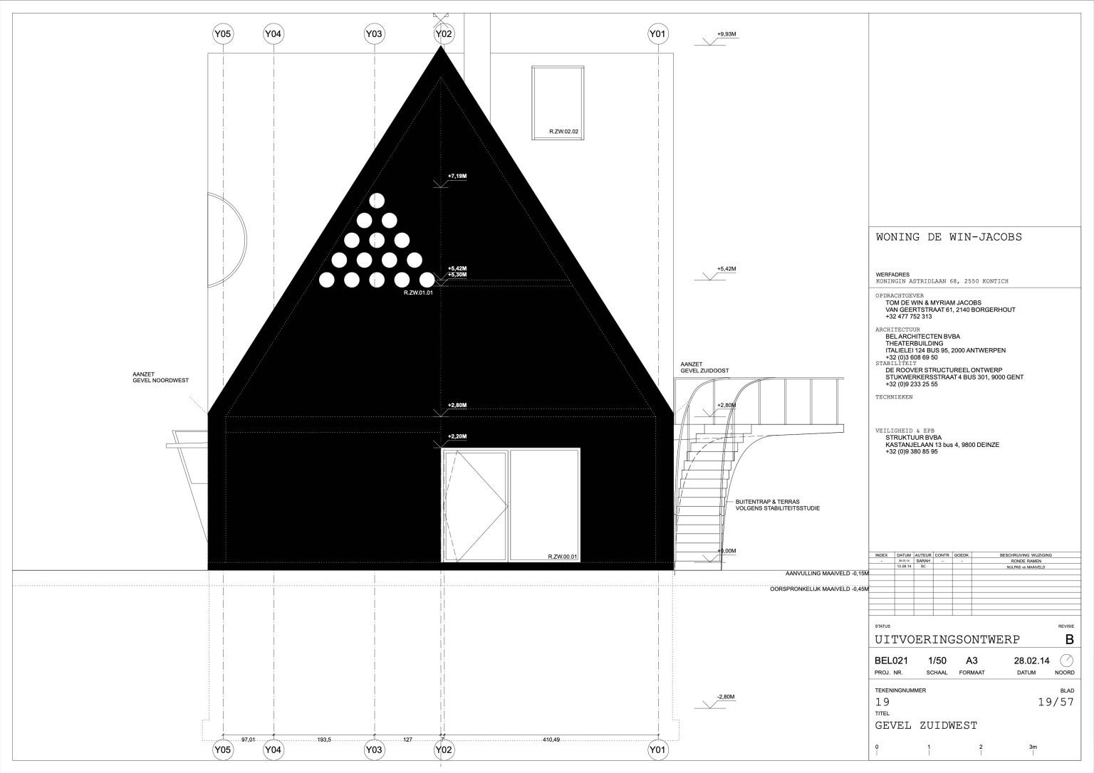 Once the initial shock wears off, the house reveals very little on second glance. From the street, it presents a largely closed façade with a large red window-door at the bottom and a mysterious cluster of round openings in a triangular pattern above. A discreet concrete canopy marks the entrance.