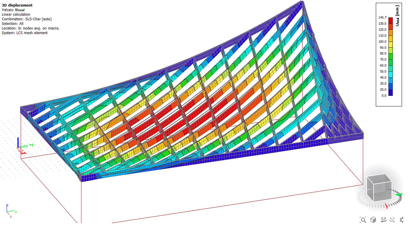 The roof of the gymnastics hall—with its impressive 27-meter span and its dynamic shift in heights—is both a structural and architectural statement. We treat it not as a flat surface with a hole cut out, but as a single continuous plane. Imagine a sheet of paper held level at three corners while the fourth corner lifts skyward—this is the spatial experience we create.