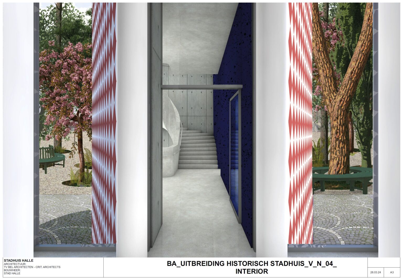 The design emphasizes accessibility, visibility, and heritage respect, creating a functional, inviting, and durable addition that connects all levels of the City Hall while preserving its historic character.