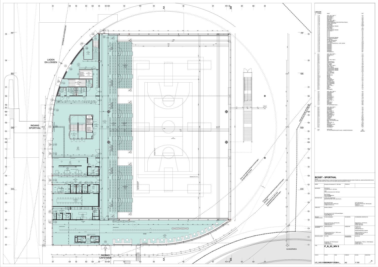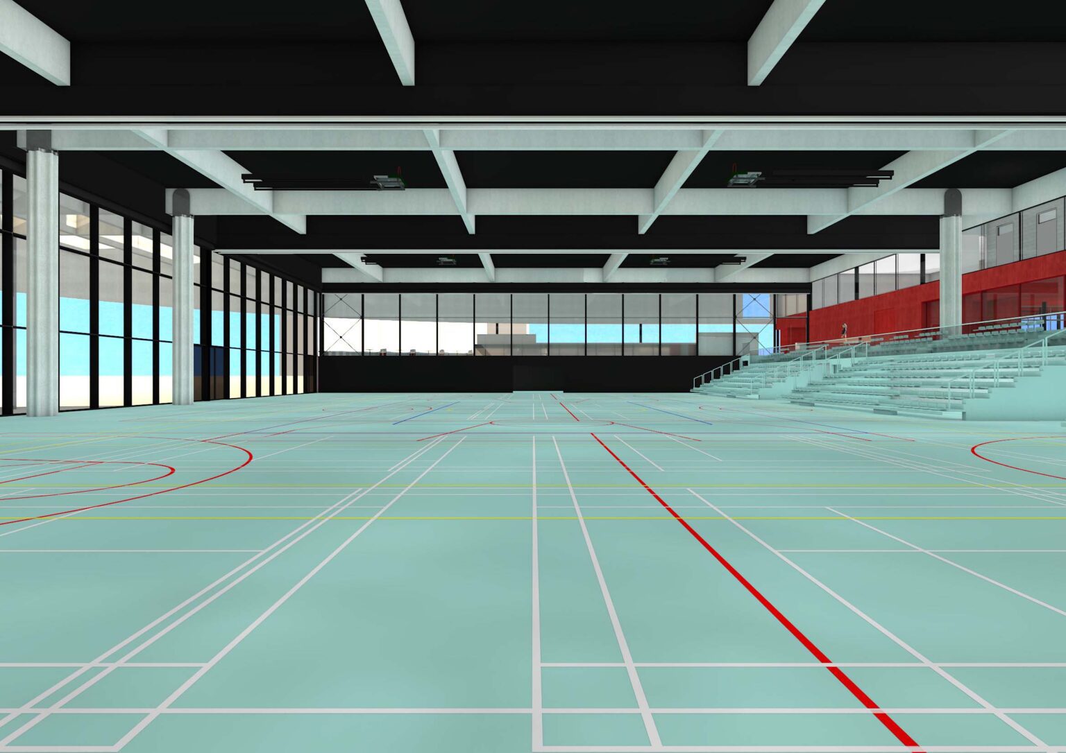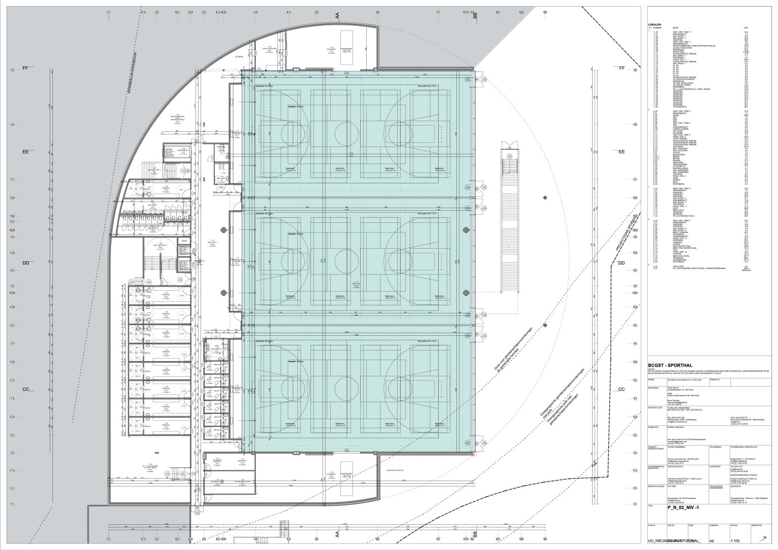 SPORTSHALL 35 x 60 m, DOJO, POLYVALENT SPACE, GYM HALL, OUTDOOR SPORT FIELDS, CAFETARIA
