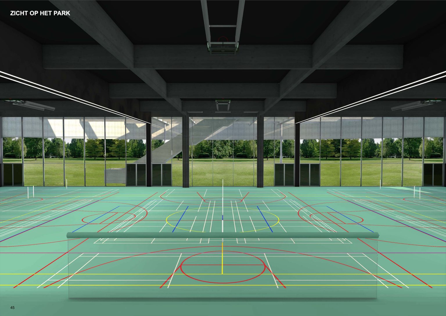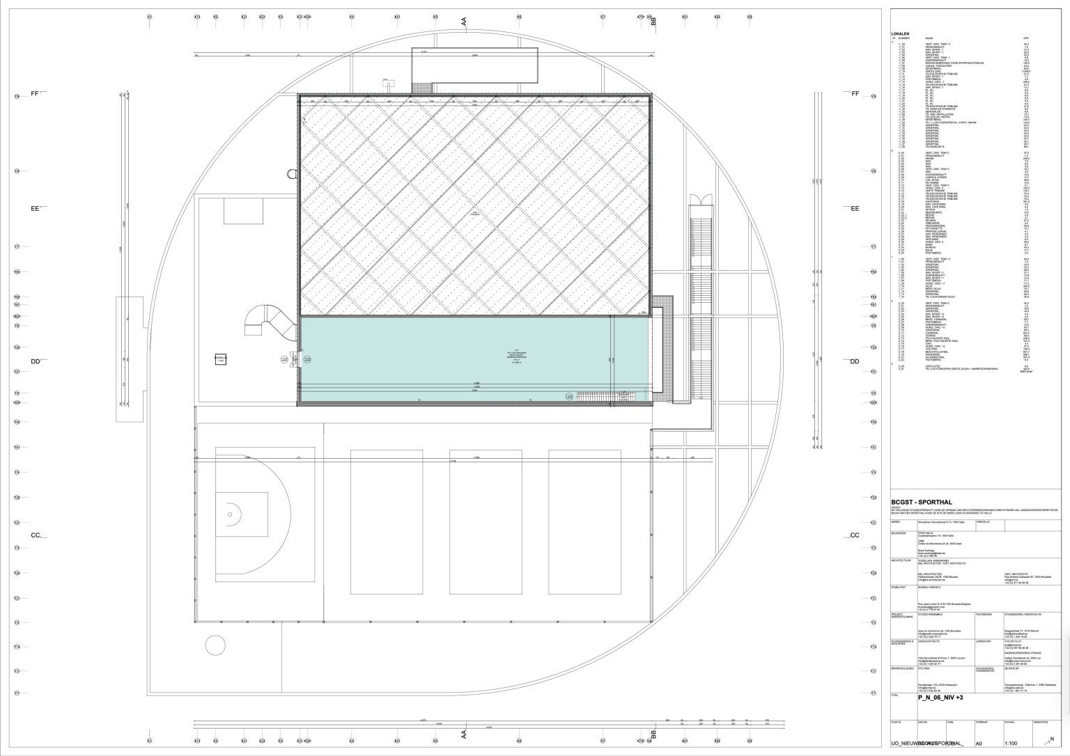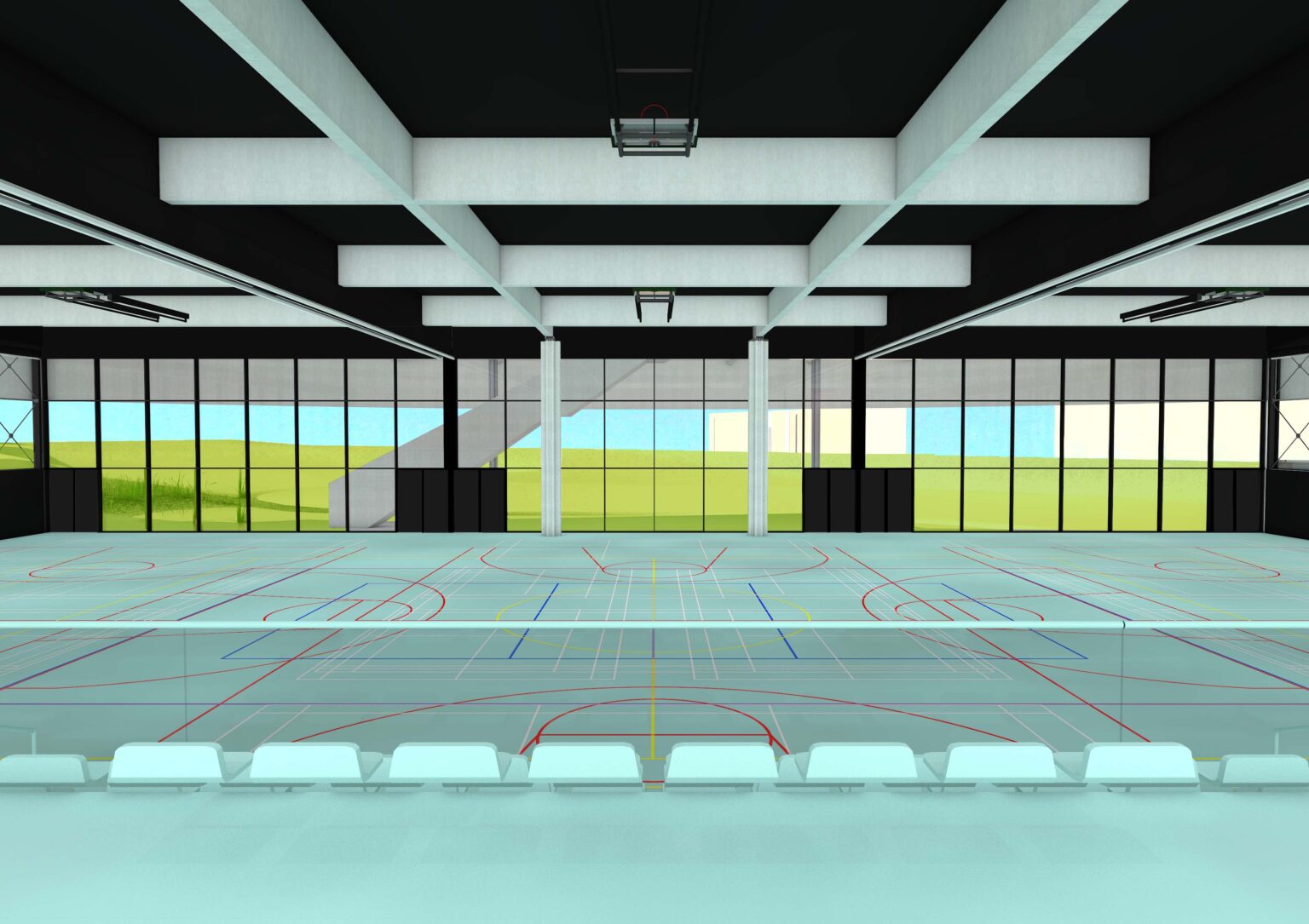 SPORTSHALL 35 x 60 m, DOJO, POLYVALENT SPACE, GYM HALL, OUTDOOR SPORT FIELDS, CAFETARIA