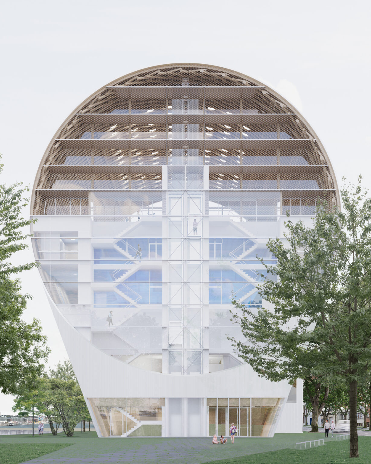 Located at the edge of the future Max-Sur-Senne Park, between the canal and the Pertuis de la Senne, the project makes smart use of its limited footprint. A carefully considered stacking system ensures a compact volume with minimal façade development.