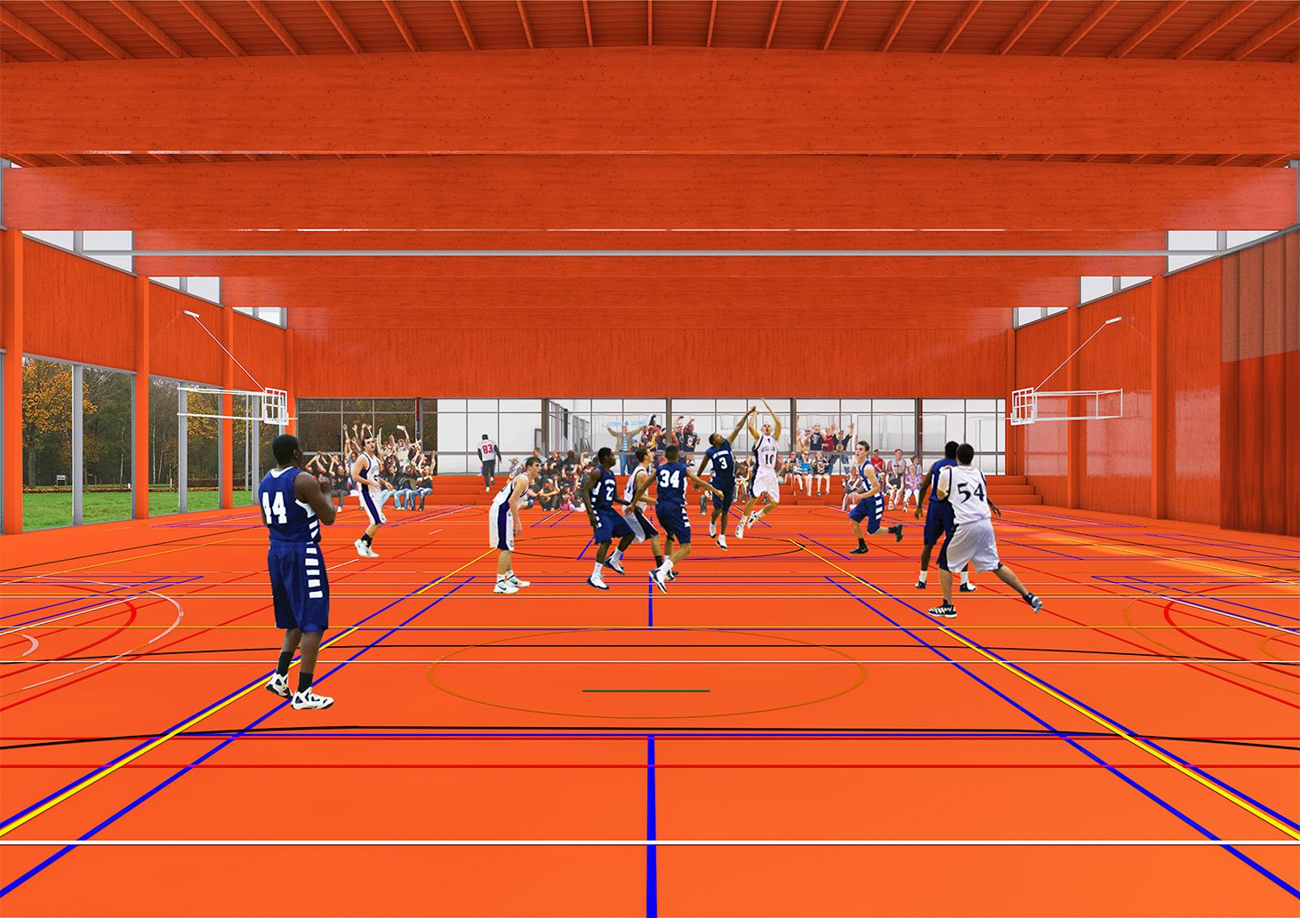 Sport Vlaanderen is transforming the Hofstade sports complex into one coherent, sustainable whole. A new front façade and garden wall unify the existing halls, while upgraded insulation, solar energy, and daylight-filled spaces ensure comfort and efficiency. Modern locker rooms, a multipurpose hall, and a vibrant sports floor make the complex welcoming, flexible, and ready for the future.