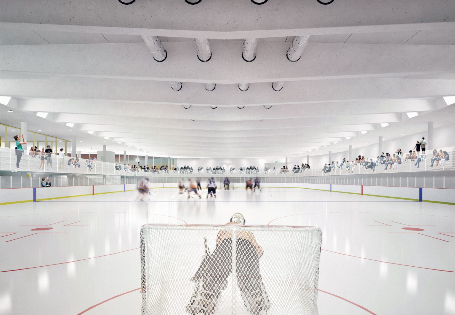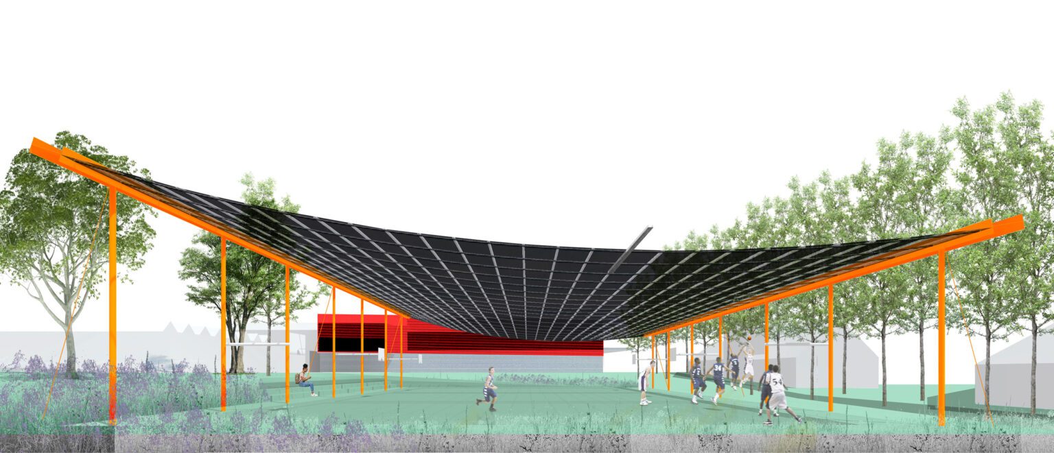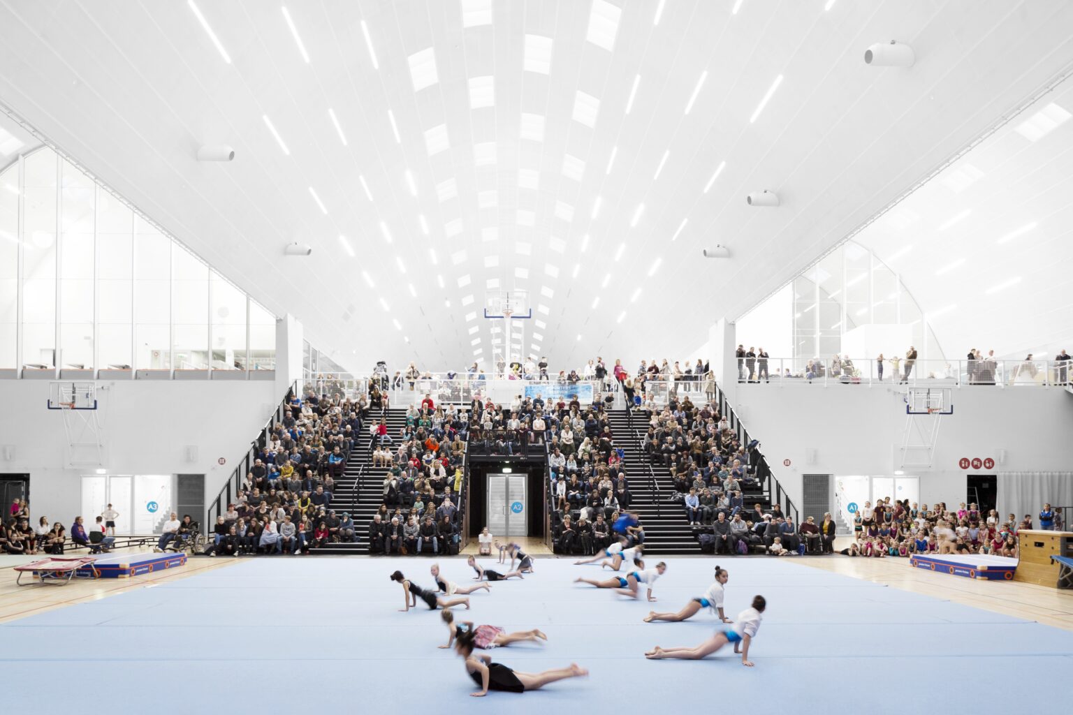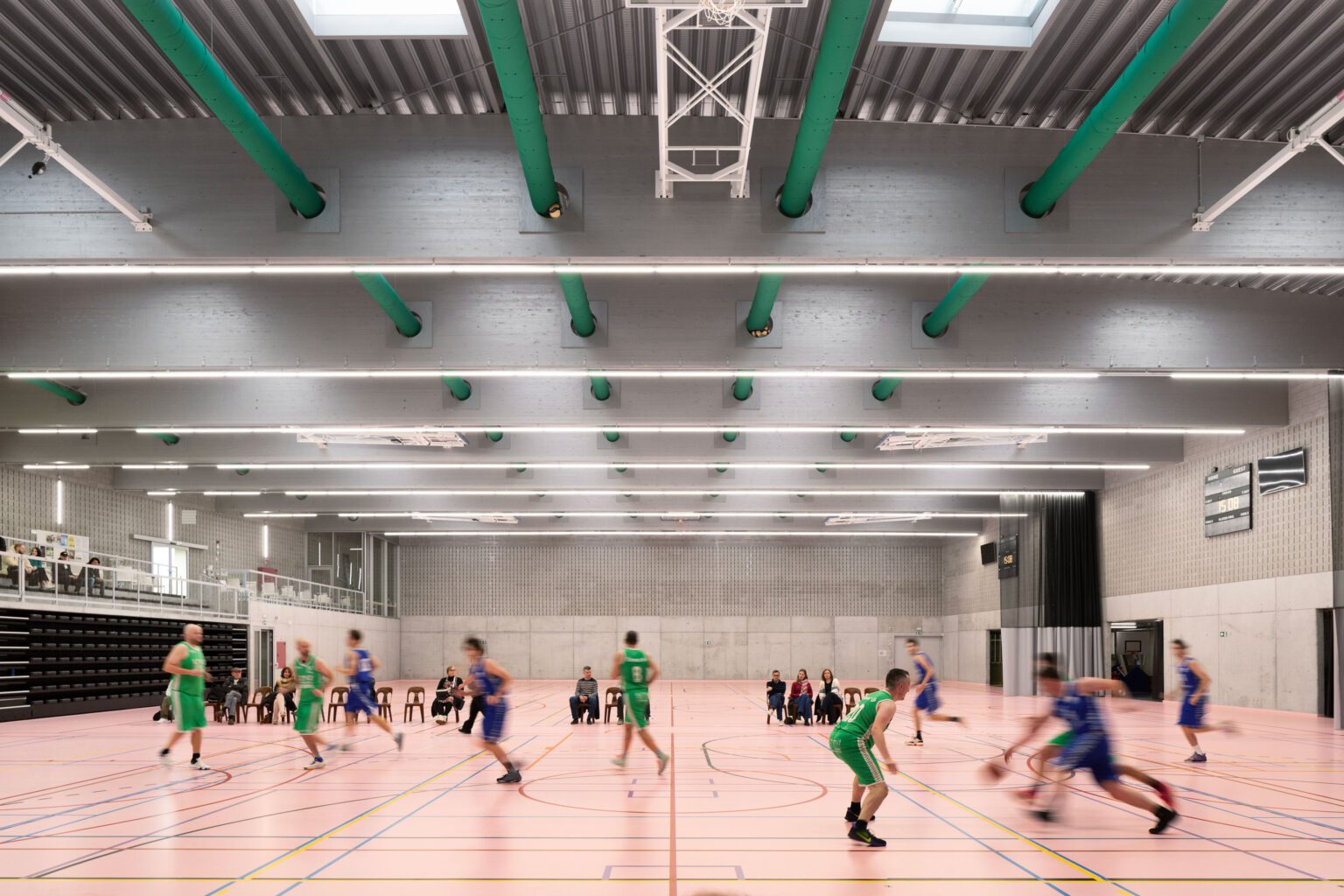 In 2010, BEL won the Open Call, organized by the Flemish Government Architect, for the extension and renovation of the listed modernist sports complex in Genk, designed by Belarusian architect Isia Isgour and engineer André Paduart. The new double sports hall with its iconic vaulted roof and the renovation of the gymnastics hall were completed in 2019. According to Knack Weekend, it is one of the most beautiful sports halls in Belgium. In 2023, the complex was nominated for the Brussels Architecture Prize. Since then, BEL has worked on around thirty sports infrastructure projects of widely varying scale: from simple sports halls to large complexes with multiple arenas and grandstands for a broad public. This also includes special facilities such as dance studios, gymnastics halls, swimming pools, and even an underground ice rink and a velodrome with seating for 2,750 spectators. To date, five sports halls have been built: the double sports hall and the renovated gymnastics hall in Genk, the renovation of the Sport Vlaanderen sports complex in Herentals, the sports and classroom facility on Henleykaai in Ghent, the sports hall with dance studio in Bertem. Today, several ambitious new sports projects are in development: the renovation of the sports complex in Hofstade, the new Zennepark with a stacked sports complex in Halle, the emblematic sports tower on Rederskaai in Brussels.