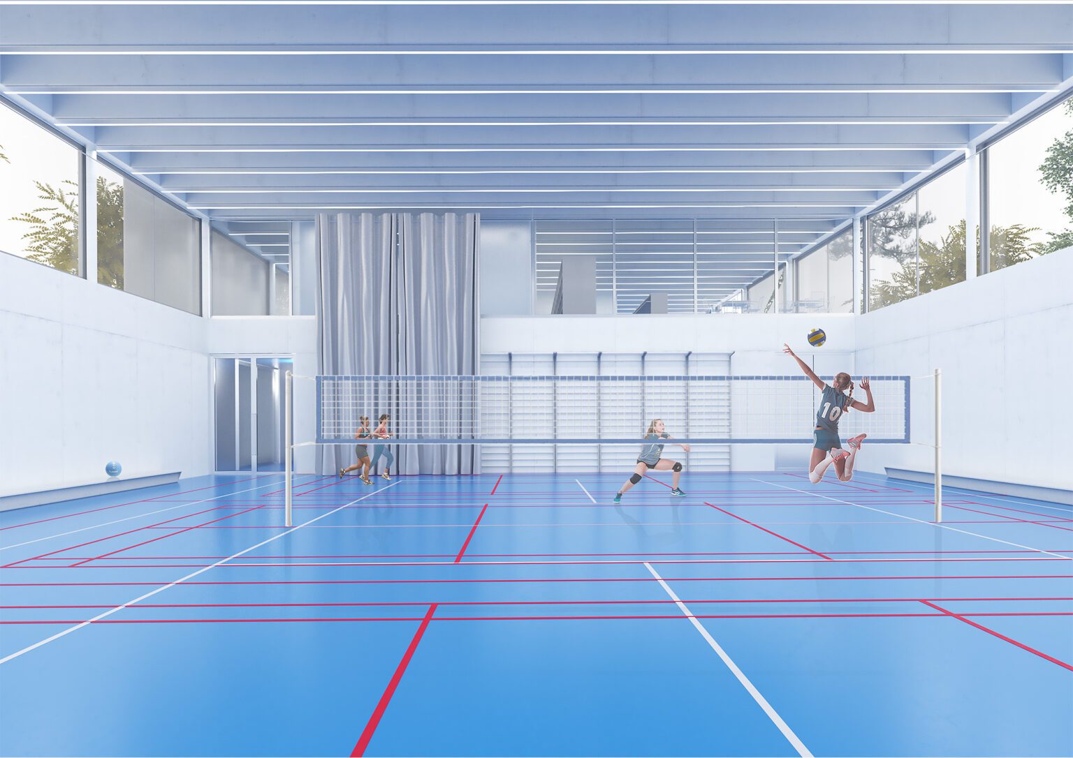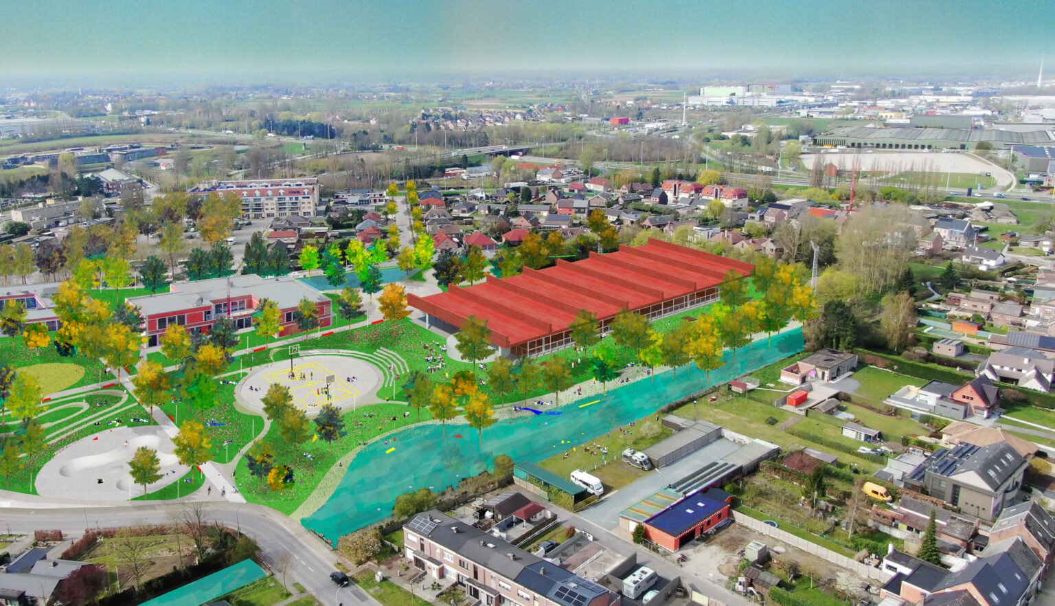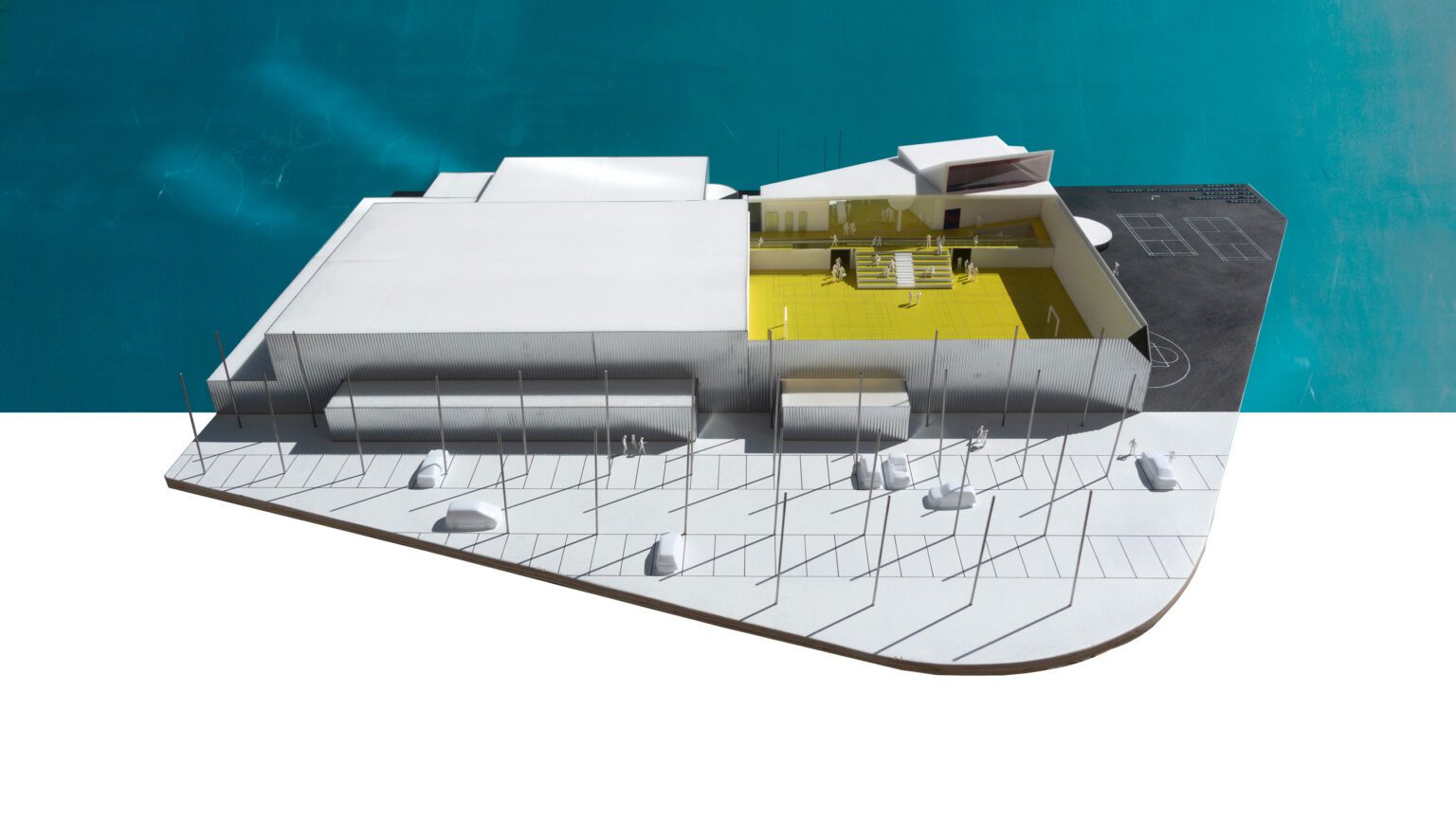 In 2010, BEL won the Open Call, organized by the Flemish Government Architect, for the extension and renovation of the listed modernist sports complex in Genk, designed by Belarusian architect Isia Isgour and engineer André Paduart. The new double sports hall with its iconic vaulted roof and the renovation of the gymnastics hall were completed in 2019. According to Knack Weekend, it is one of the most beautiful sports halls in Belgium. In 2023, the complex was nominated for the Brussels Architecture Prize. Since then, BEL has worked on around thirty sports infrastructure projects of widely varying scale: from simple sports halls to large complexes with multiple arenas and grandstands for a broad public. This also includes special facilities such as dance studios, gymnastics halls, swimming pools, and even an underground ice rink and a velodrome with seating for 2,750 spectators. To date, five sports halls have been built: the double sports hall and the renovated gymnastics hall in Genk, the renovation of the Sport Vlaanderen sports complex in Herentals, the sports and classroom facility on Henleykaai in Ghent, the sports hall with dance studio in Bertem. Today, several ambitious new sports projects are in development: the renovation of the sports complex in Hofstade, the new Zennepark with a stacked sports complex in Halle, the emblematic sports tower on Rederskaai in Brussels.